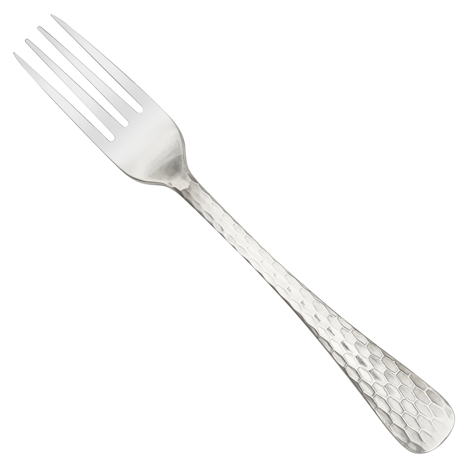 Create an elevated table setting with this commercial-grade 7.875" dinner fork, part of the Caspian flatware collection by Winco. This versatile dinner fork is ideal for main courses or as a general purpose dining fork. The Caspian pattern invites light to dance across the hammered ripples, a versatile choice for any setting. Forged from stainless steel, this medium weight dinner fork is designed to withstand daily use in a commercial foodservice environment making it an ideal choice for hotels, cafes and restaurants. Each piece of the Caspian flatware collection is dishwasher safe for both residential and commercial dishwashers.
