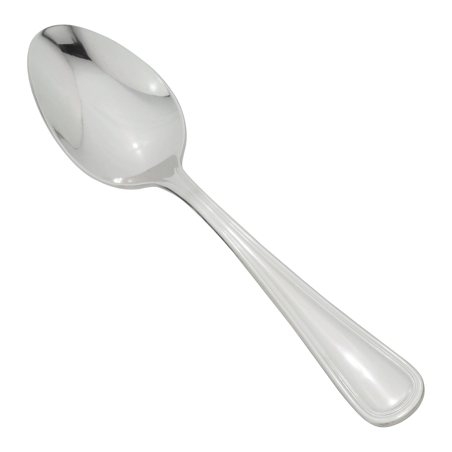Create an elevated table setting with this commercial-grade teaspoon, part of the Shangarila flatware collection by Winco. This teaspoon features a small bowl making it ideal for tea or coffee service.With simple and elegant contoured lines, the Shangarila flatware collection brings an understated sophistication to any setting. Forged from heavy-duty stainless steel, this heavyweight teaspoon is designed to withstand daily use in a commercial foodservice environment making it an ideal choice for hotels, cafes, and restaurants.Each piece of the Shangarila flatware collection is dishwasher safe for both residential and commercial dishwashers. The elegant mirror finish is designed to last and is resistant to pitting or dulling, even after repeated washes.