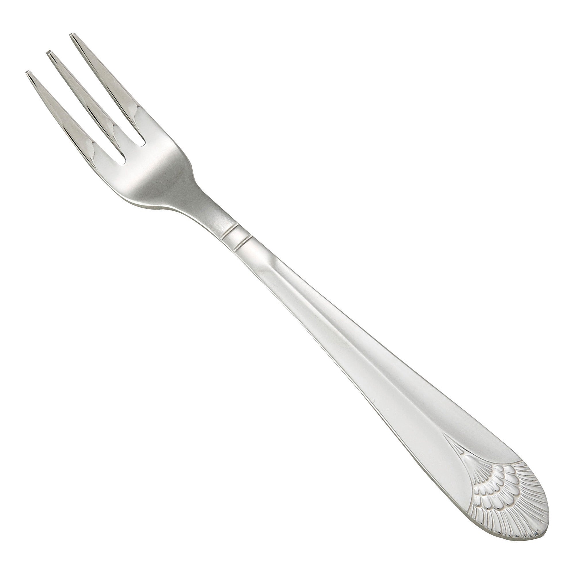 Create an elevated table setting with this commercial-grade 6.75" oyster fork, part of the Peacock flatware collection by Winco. This specially designed oyster fork is ideal for serving oysters, seafood and other hour d’oeuvres.The Peacock flatware collection features a flared handle and sculpted detailing on the handle that blends seamlessly into any elaborate place setting. Forged from heavy-duty stainless steel, this heavyweight oyster fork is designed to withstand daily use in a commercial foodservice environment making it an ideal choice for hotels, cafes and restaurants.Each piece of the Peacock flatware collection is dishwasher safe for both residential and commercial dishwashers. The elegant mirror finish is designed to last and is resistant to pitting or dulling, even after repeated washes.