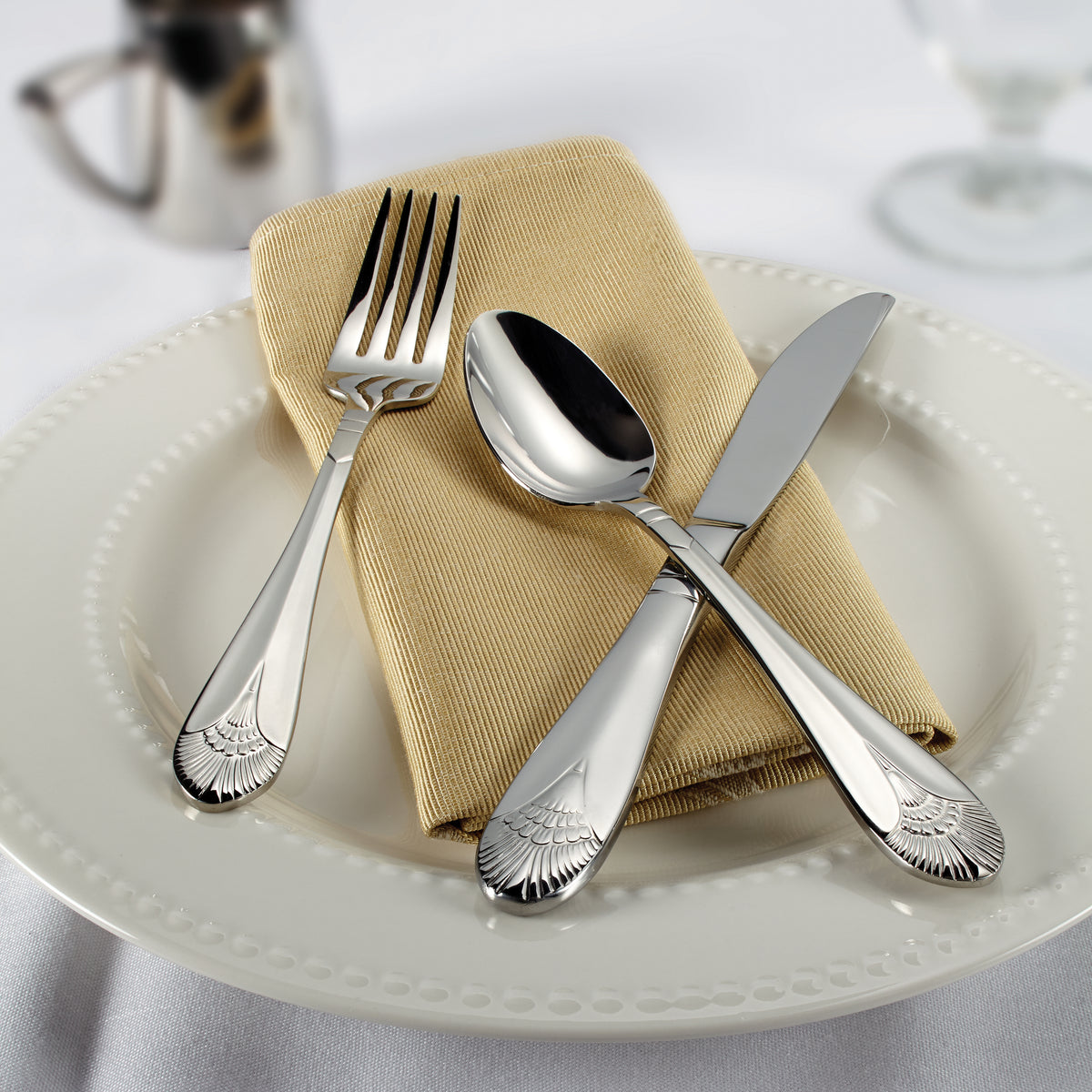 - Peacock Pattern – This flatware collection features a flared handle and sculpted detailing on the handle that blends seamlessly into any elaborate place setting