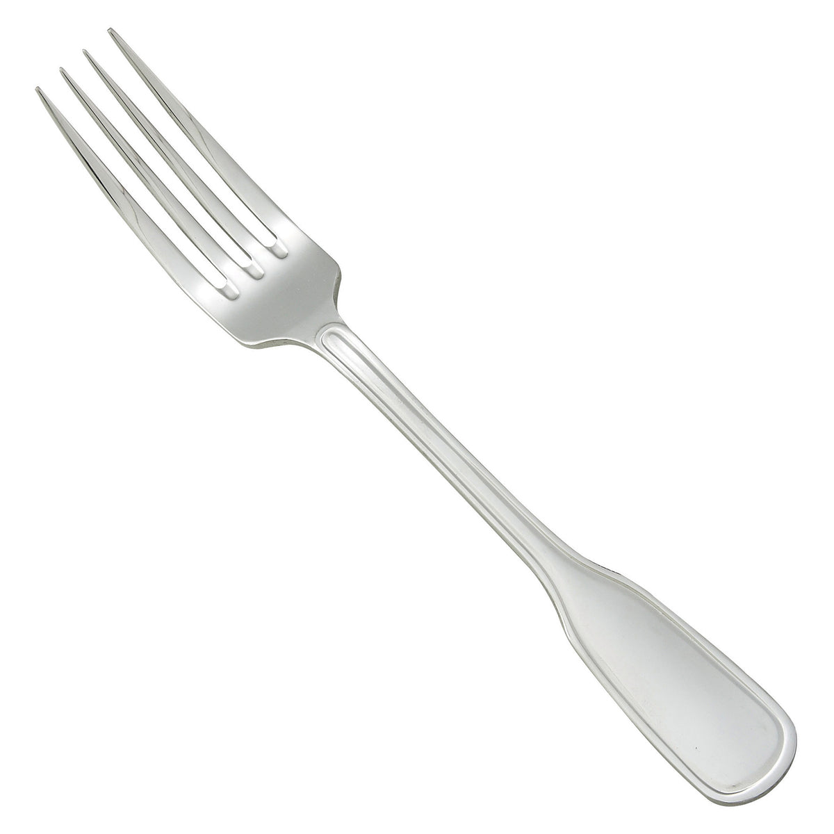 Create an elevated table setting with this commercial-grade 9.25" table fork, part of the Oxford flatware collection by Winco. This versatile table fork is ideal for serving entrees or can be used as a general purpose fork for salads and desserts.The Oxford flatware collection features a fiddle-shaped handle with subtle grooves that lend a touch of old-fashioned elegance to any setting. Forged from heavy-duty stainless steel, this heavyweight table fork is designed to withstand daily use in a commercial foodservice environment making it an ideal choice for hotels, cafes and restaurants.Each piece of the Oxford flatware collection is dishwasher safe for both residential and commercial dishwashers. The elegant mirror finish is designed to last and is resistant to pitting or dulling, even after repeated washes.