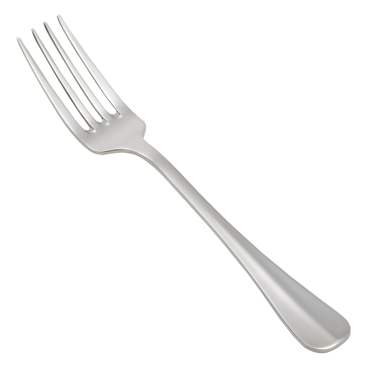 Create an elevated table setting with this commercial-grade salad fork, part of the Stanford flatware collection by Winco. This specially designed salad fork features wide tines to provide additional leverage for cutting and spearing large vegetables and leafy greens. With a subtle elevated fold down the center of a teardrop-shaped handle, the Stanford flatware collection brings an elegant touch to a contemporary setting. Forged from heavy-duty stainless steel, this heavyweight salad fork is designed to withstand daily use in a commercial foodservice environment making it an ideal choice for hotels, cafes and restaurants.Each piece of the Stanford flatware collection is dishwasher safe for both residential and commercial dishwashers. The elegant mirror finish is designed to last and is resistant to pitting or dulling, even after repeated washes.