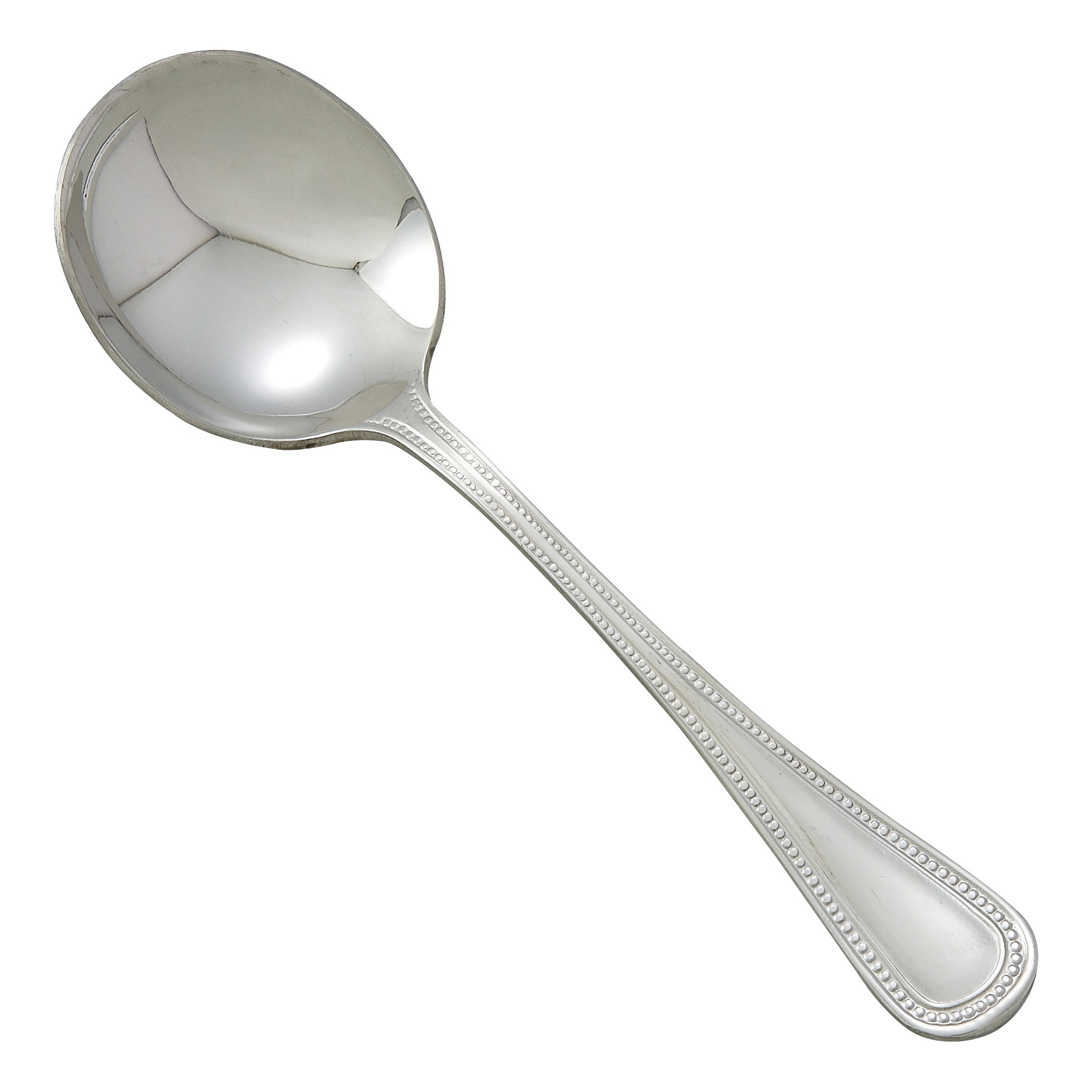 Create an elevated table setting with this commercial-grade 7.25" bouillon spoon, part of the Pearl flatware collection by Winco. This bouillon spoon features a shallow bowl designed to contour the interior of a soup bowl making this an ideal spoon for soups, broths and side dishes.The Pearl flatware collection takes inspiration from a strand of pearls featuring delicate beading for a timeless classic that compliments any tabletop. Forged from heavy-duty stainless steel, this heavyweight bouillon spoon is designed to withstand daily use in a commercial foodservice environment making it an ideal choice for hotels, cafes and restaurants.Each piece of the Pearl flatware collection is dishwasher safe for both residential and commercial dishwashers. The elegant mirror finish is designed to last and is resistant to pitting or dulling, even after repeated washes.