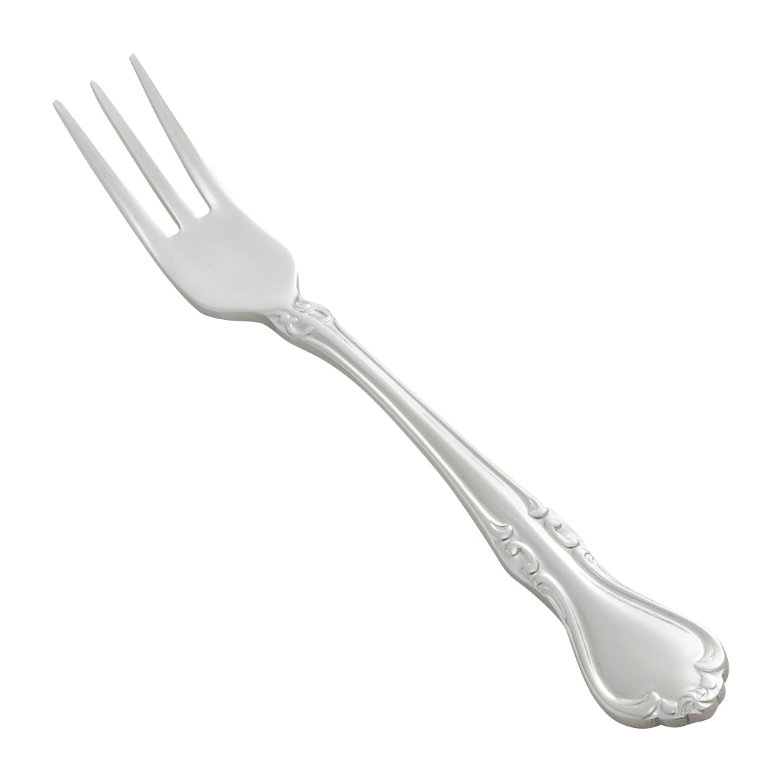 Create an elevated table setting with this commercial-grade 5" oyster fork, part of the Chantelle flatware collection by Winco. This specially designed oyster fork is ideal for serving oysters, seafood and other hour d’oeuvres.Inspired by the Regency era, the Chantelle flatware collection by Winco features delicate flourished lines adding a traditional touch to any table. Forged from extra heavy-duty 18/8 stainless steel, this heavyweight oyster fork features a mirrored finish and is designed to withstand daily use in a commercial foodservice environment making it an ideal choice for hotels, cafes and restaurants.Each piece of the Chantelle flatware collection is dishwasher safe for both residential and commercial dishwashers. The elegant mirror finish is designed to last and is resistant to pitting or dulling, even after repeated washes.
