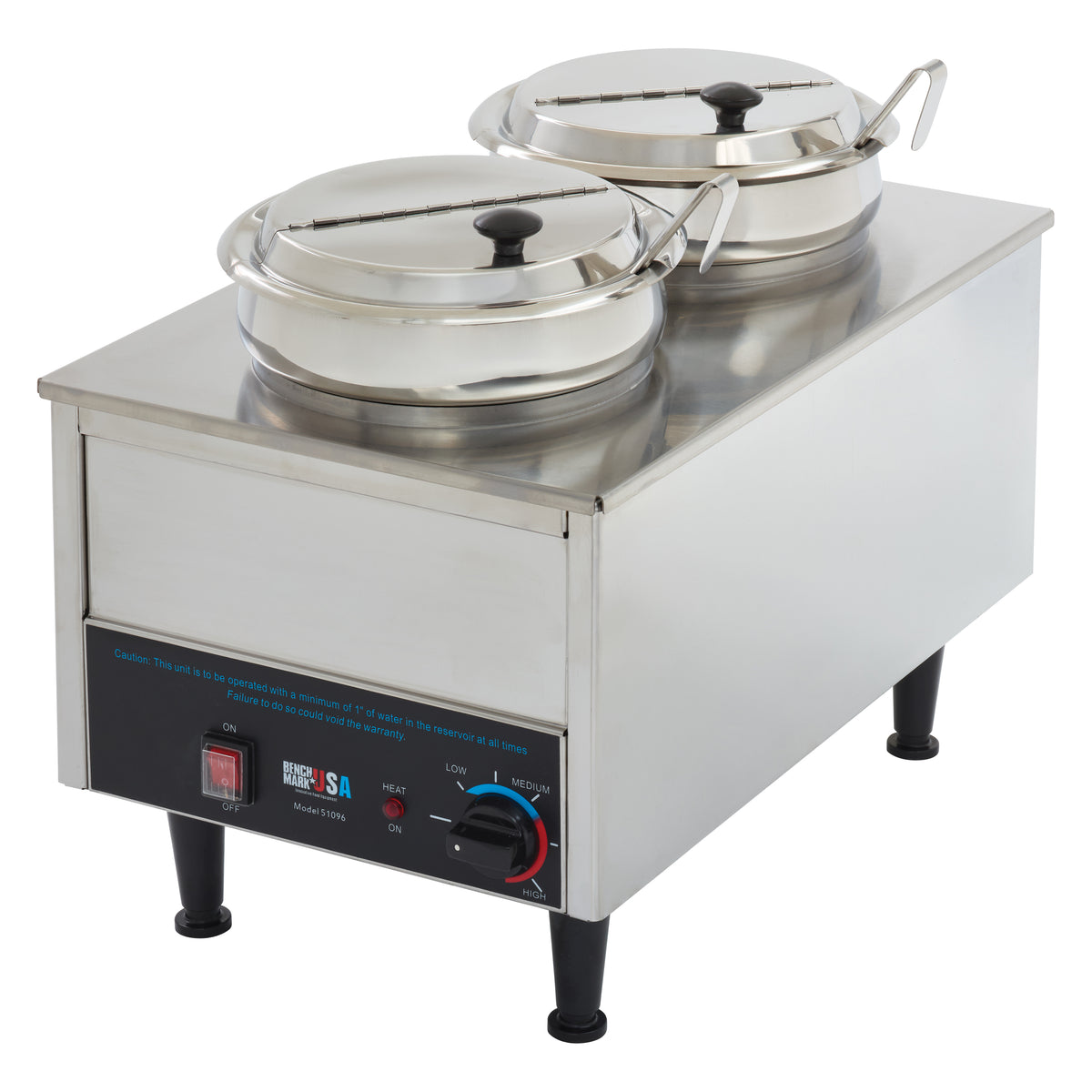 The Winco 51072P BenchmarkUSA Dual-Well Food Warmer - 2 Ladles, 2 Lids is built for commercial foodservice professionals who demand durability, performance, and ease of use. Whether you're outfitting a restaurant, hotel kitchen, bakery, or catering setup, this product is a practical and reliable choice for daily operations.