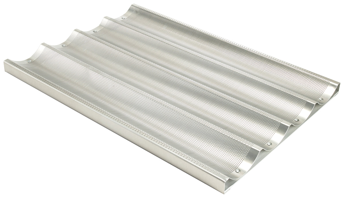 Serve up warm and fresh long rolls with the sturdy, commercial-grade baguette pans by Winco. Each compartment cradles a baguette - up to six with the largest size pan - and the perforations allow air circulation for crispy crusts while the inside stays soft.