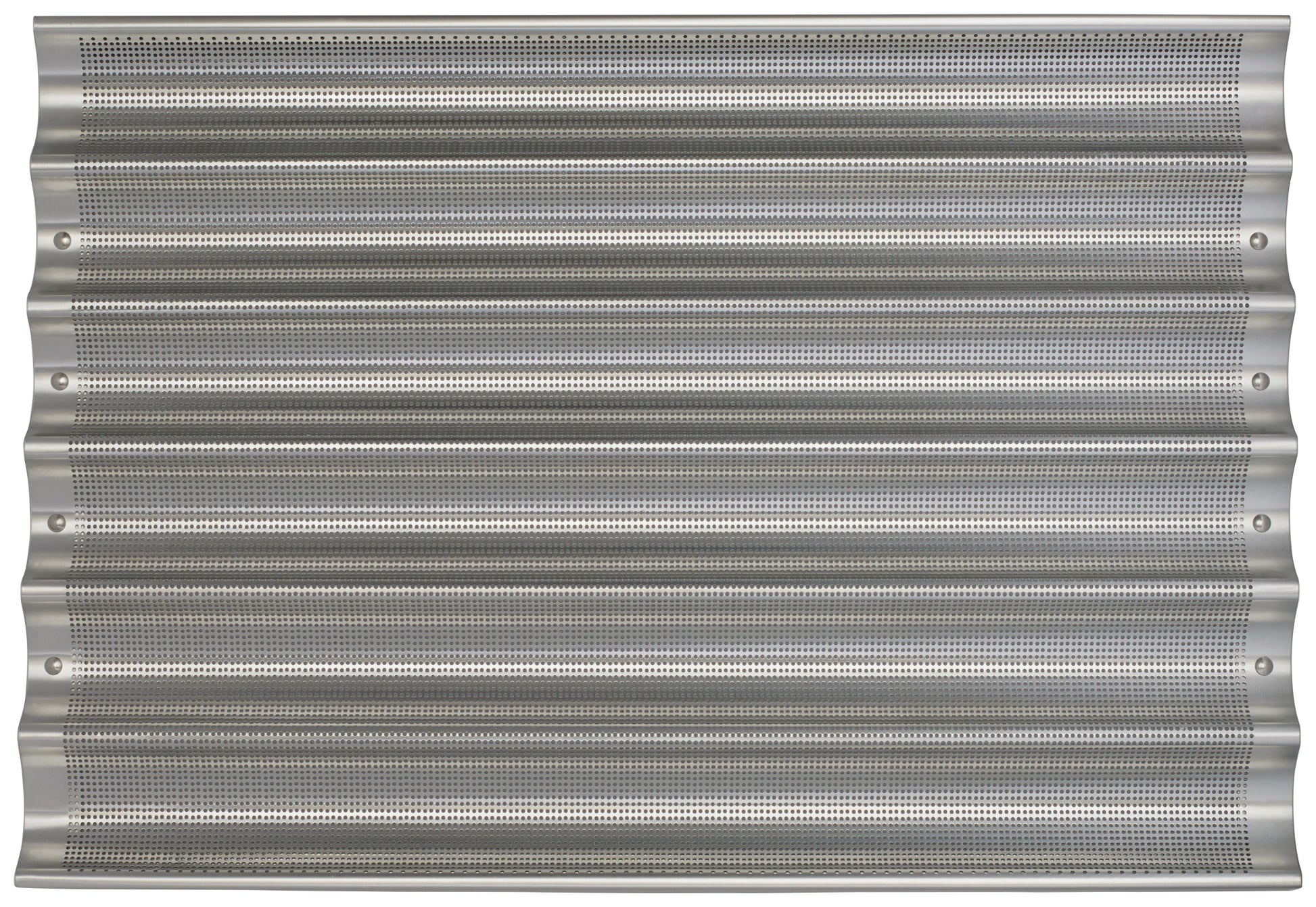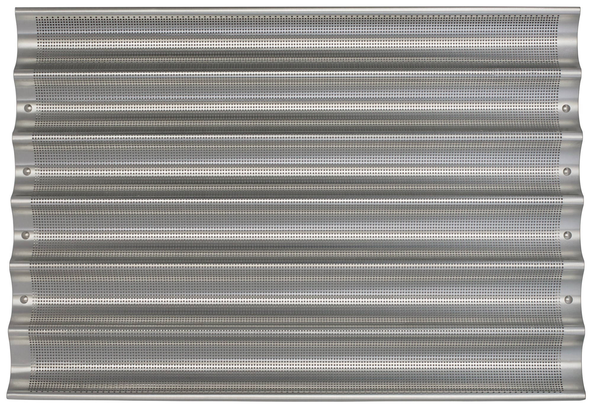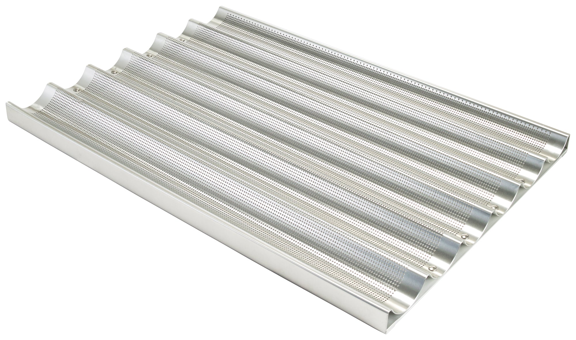 Serve up warm and fresh long rolls with the sturdy, commercial-grade baguette pans by Winco. Each compartment cradles a baguette - up to six with the largest size pan - and the perforations allow air circulation for crispy crusts while the inside stays soft.