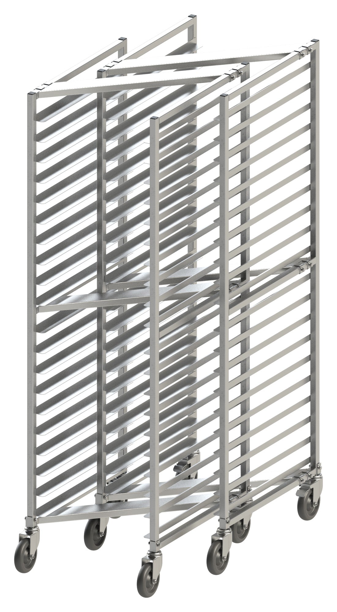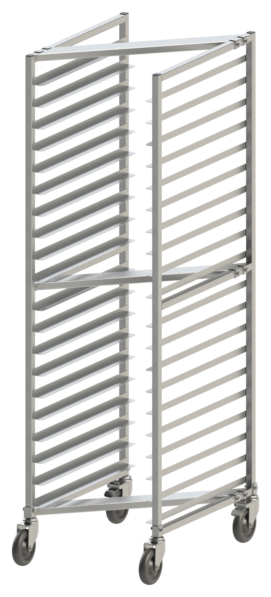 • Easy Maneuverability – (4) 5” swivel casters allow sheet pan rack to be securely transported; (2) included casters have brakes
