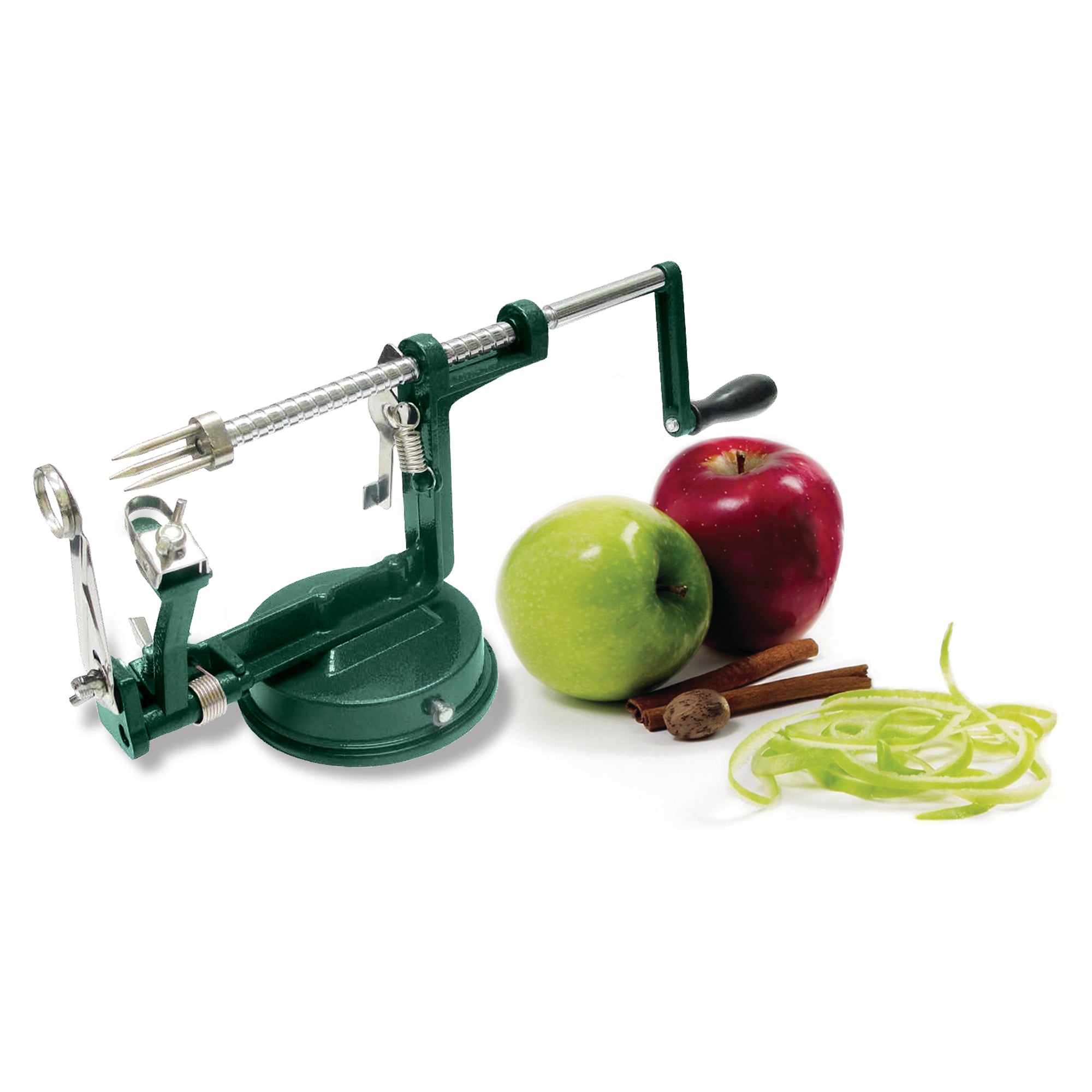 This apple peeler is about efficiency and volume. Turn the handle and it quickly peels, slices and cores apples all at the same time.