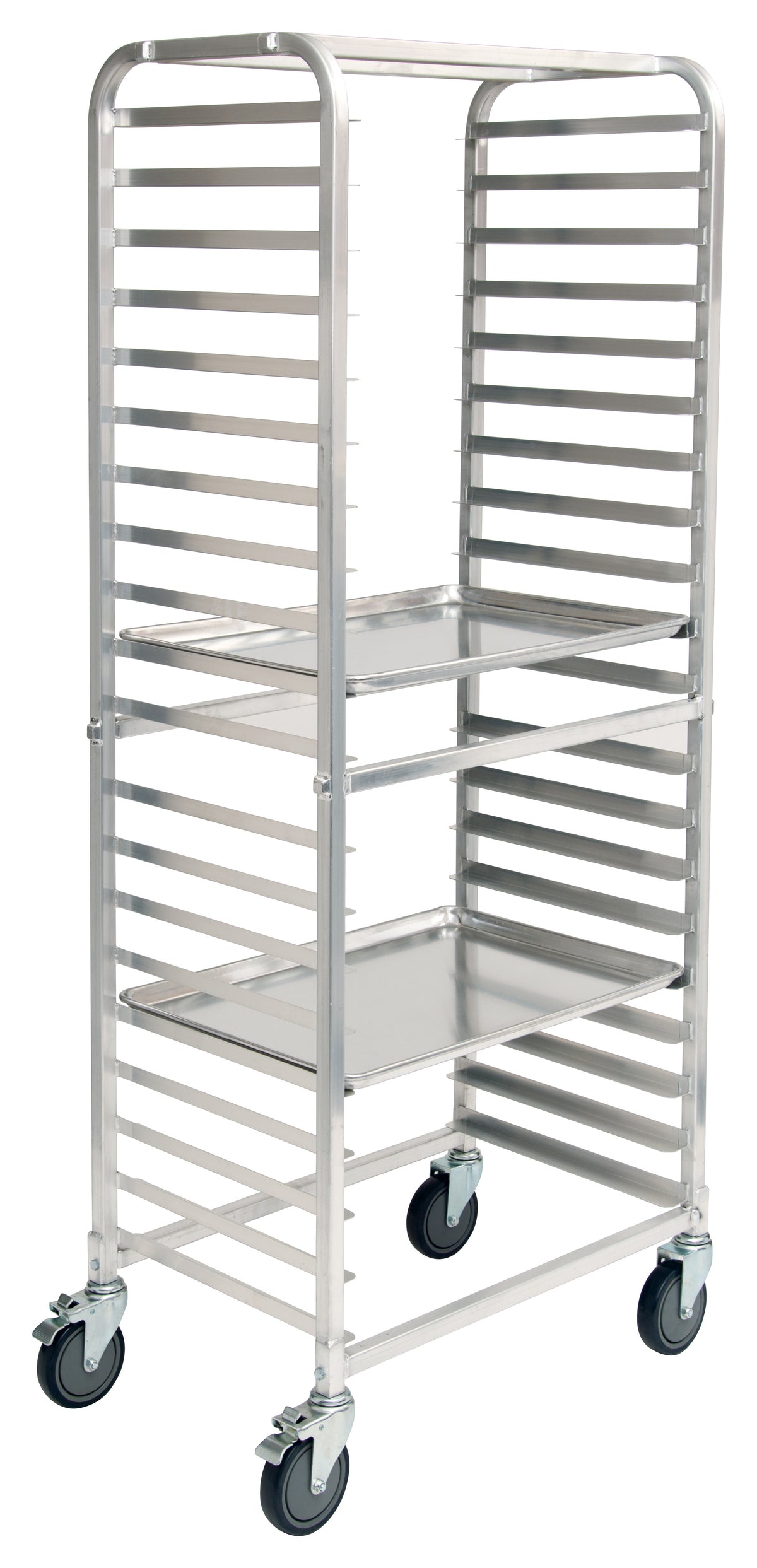 Made for the most demanding restaurant kitchens, this 20-tier Aluminum sheet pan rack is designed with side-load access for alternative convenience in tight kitchen and bakery spaces.