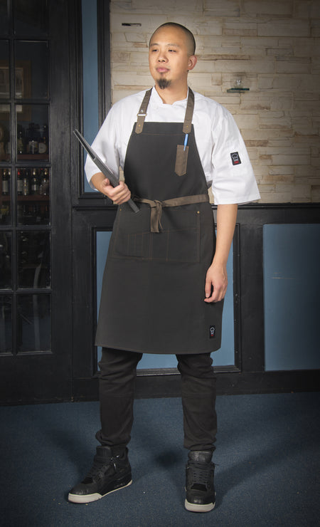 These mid-weight bib aprons are the perfect addition to uniforms calling for a streamlined look. Features include an adjustable neck strap, a thermometer pocket, and eight (8) different size waist pockets.