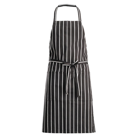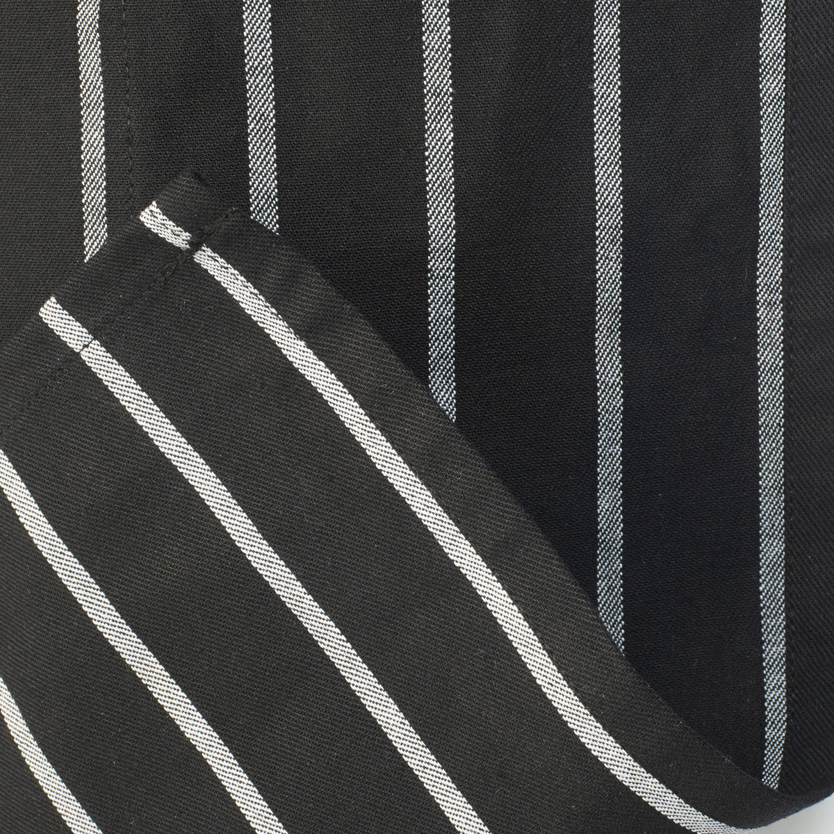 The stripe pattern of this bib apron is woven in, making for a lasting appearance that stands up to busy service and bartending shifts.