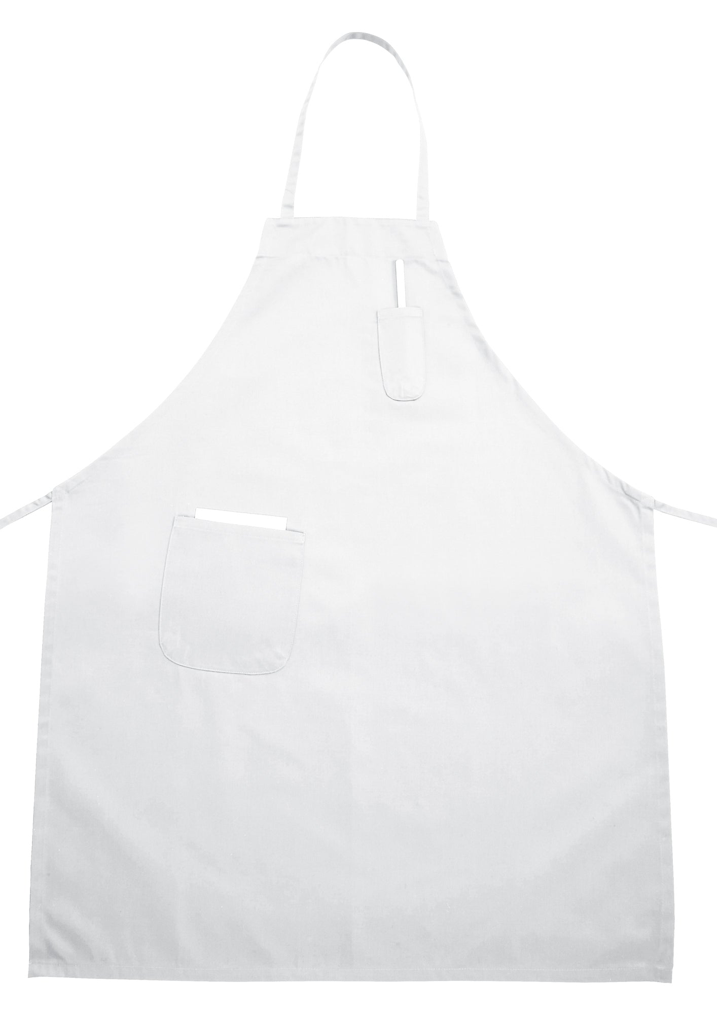 Winco BA-PWH 26 Inch Bib Apron 33 Inch Full-length with 2 Pockets White Poly-Cotton