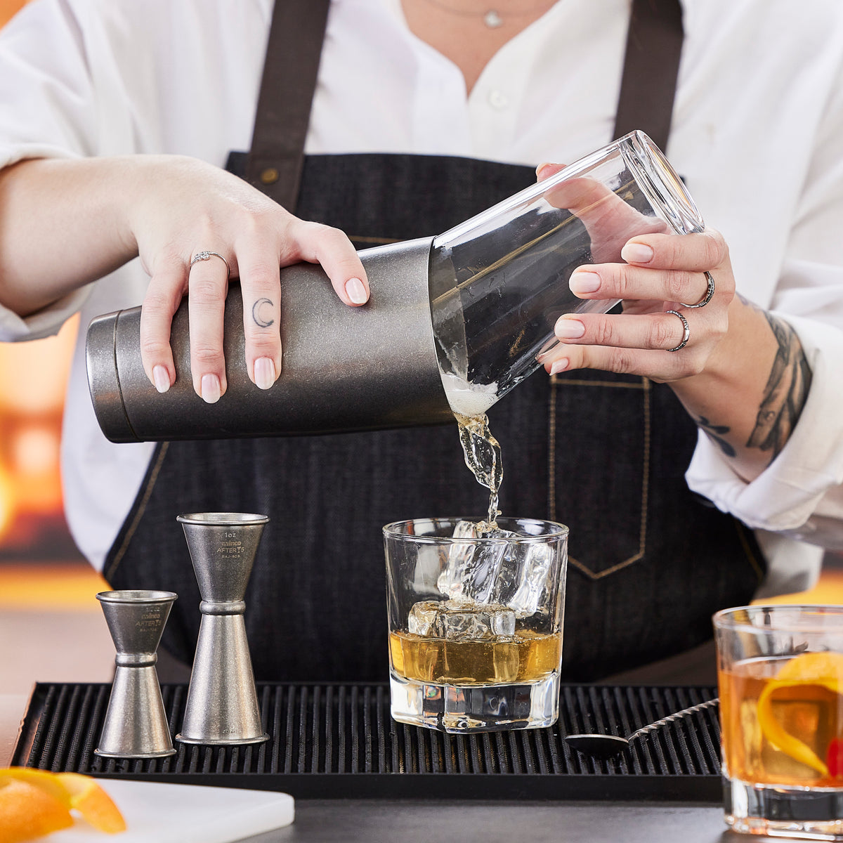 Designed for professional bartenders, our barware line delivers chic design, optimal mixing, precise measurement, and smooth pours for crafting and serving your inspired creations with style. For "behind the stick" pros, After 5 shaker cups deliver capacity, efficiency, and speed. Create perfectly chilled cocktails with our tight seal, balanced shake, and easy separation.