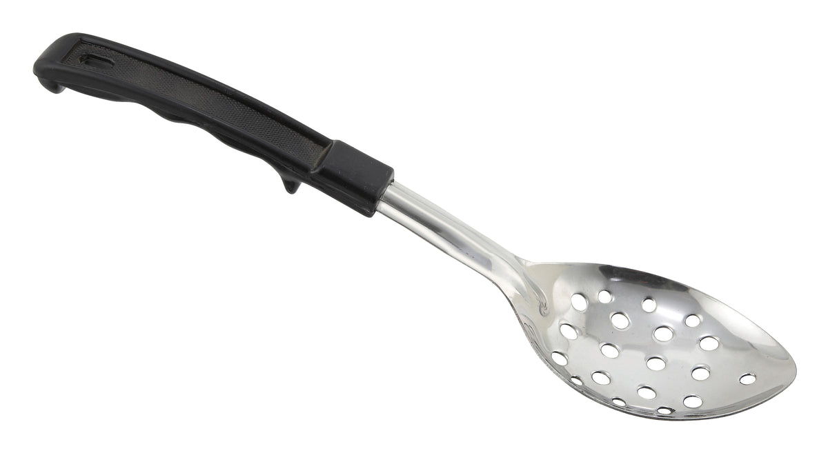 Winco BHPN-11 11 Inch Perforated Basting Spoon Black Plastic Handle Stainless Steel