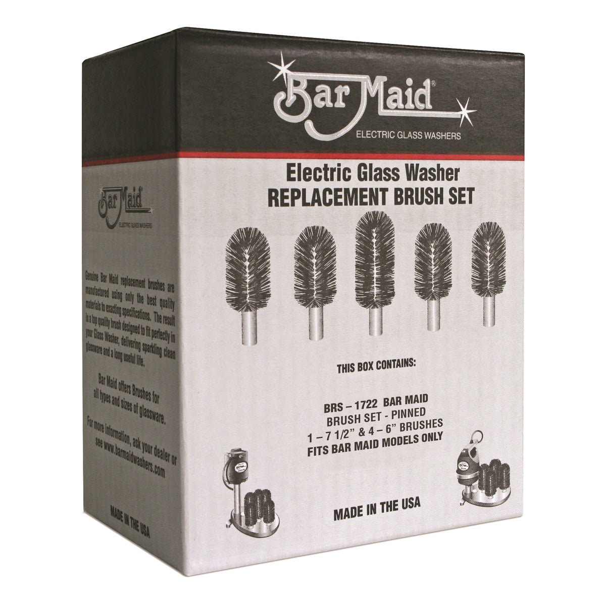 Genuine Bar Maid replacement brushes are manufactured using only the best quality materials to exacting specifications. The result is a top quality brush designed to fit perfectly in your Glass Washer, delivering sparkling clean glassware and a long useful life.