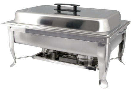 Winco C-1080 8 Quarts Chafer Rectangular with Folding Stand Polished Stainless Steel