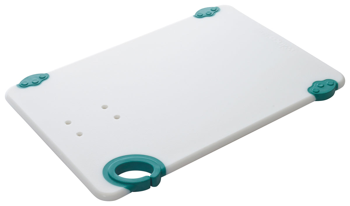 Add portability to the KATTEX Fruit and Vegetable Slicer (FVS-1) with this customized STATIKBOARD cuttingboard mount. The molded-through, non-slip feet prevent slipping & sliding, even on wet countertops, and the fully-rubberized hook provides easy storage