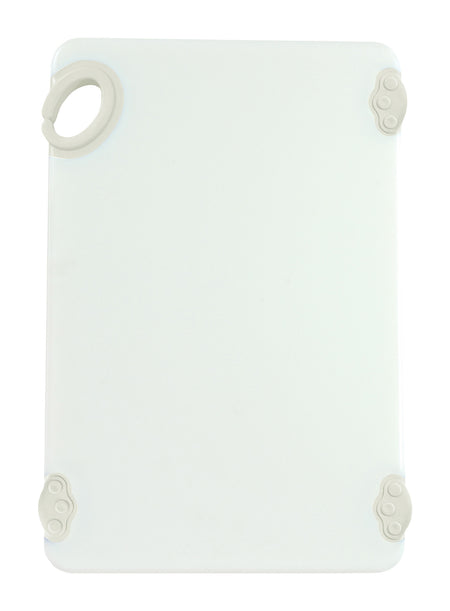 Winco CBN-1218WT 12 Inch Rectangular Cutting Board with Rubber Grip Hook White Co-polymer