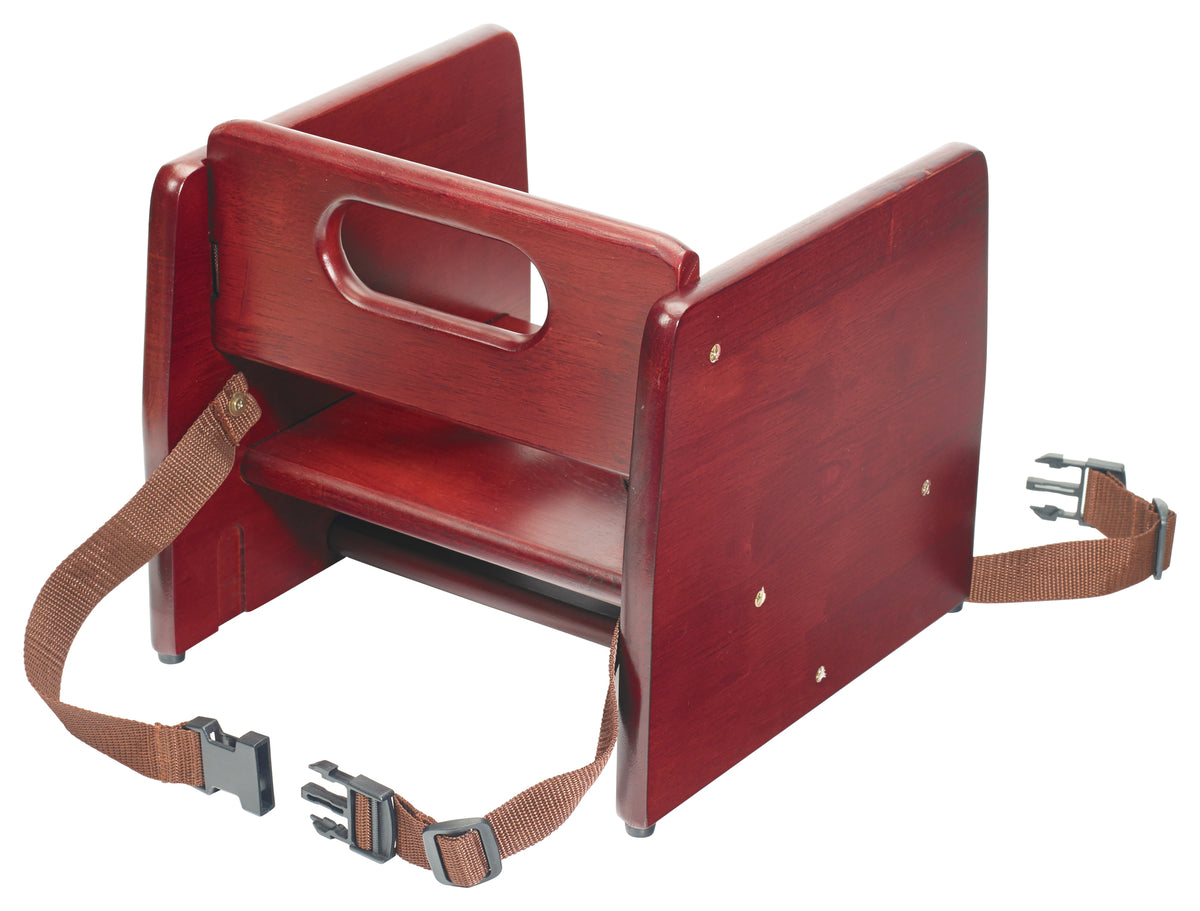 • High-quality rubberwood • Active 3-point harness restraint • 2 additional straps below for securing to a chair • Size: 11-3/4"W x 11-3/4"D x 10-1/2"H • Minimum chair seat requirements: 15"W x 12"D x 10"H