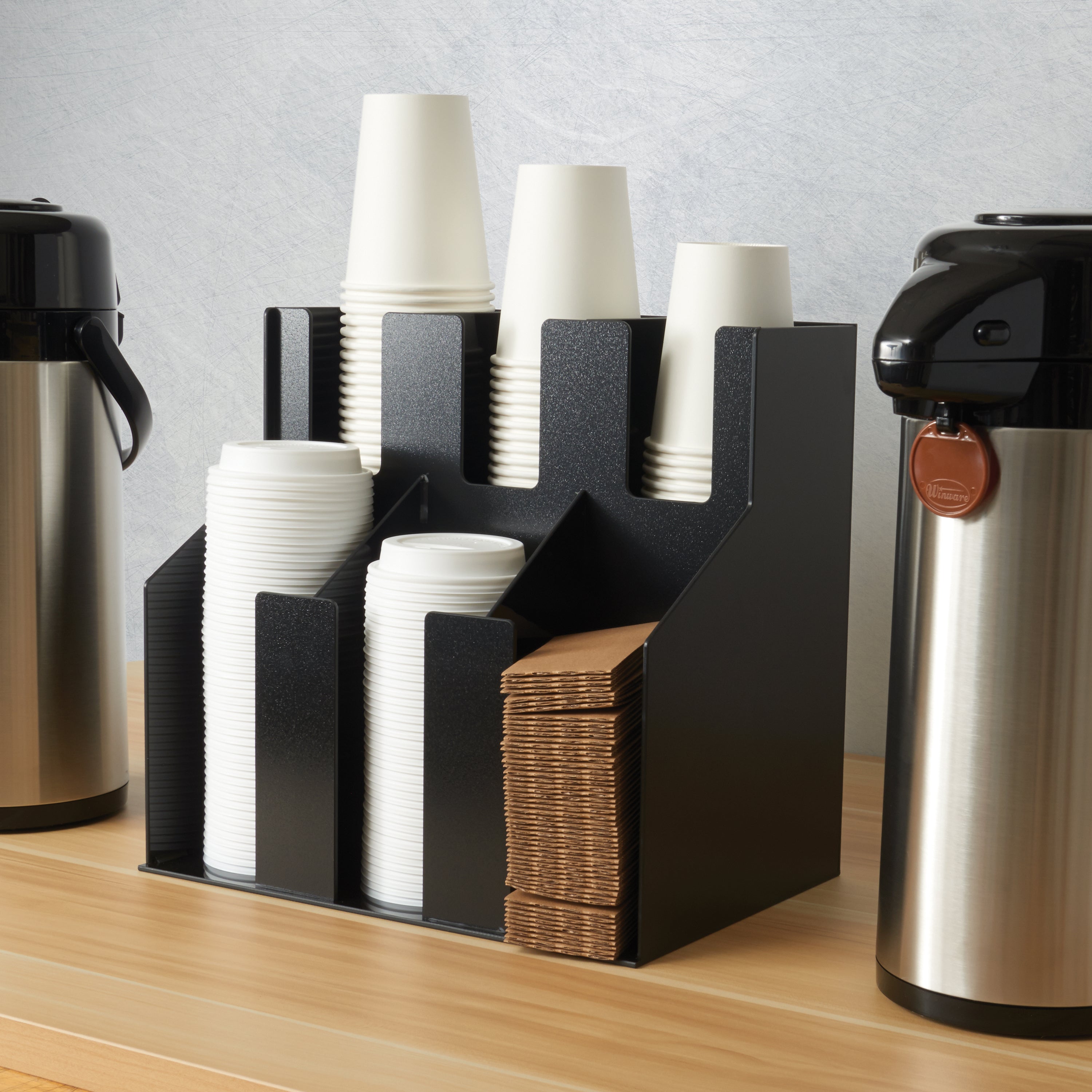 The ideal solution for busy self-service stations with limited countertop space. Multifunctional compartments keep cups and lids organized and easily accessible. Made of durable, easy-clean ABS plastic.