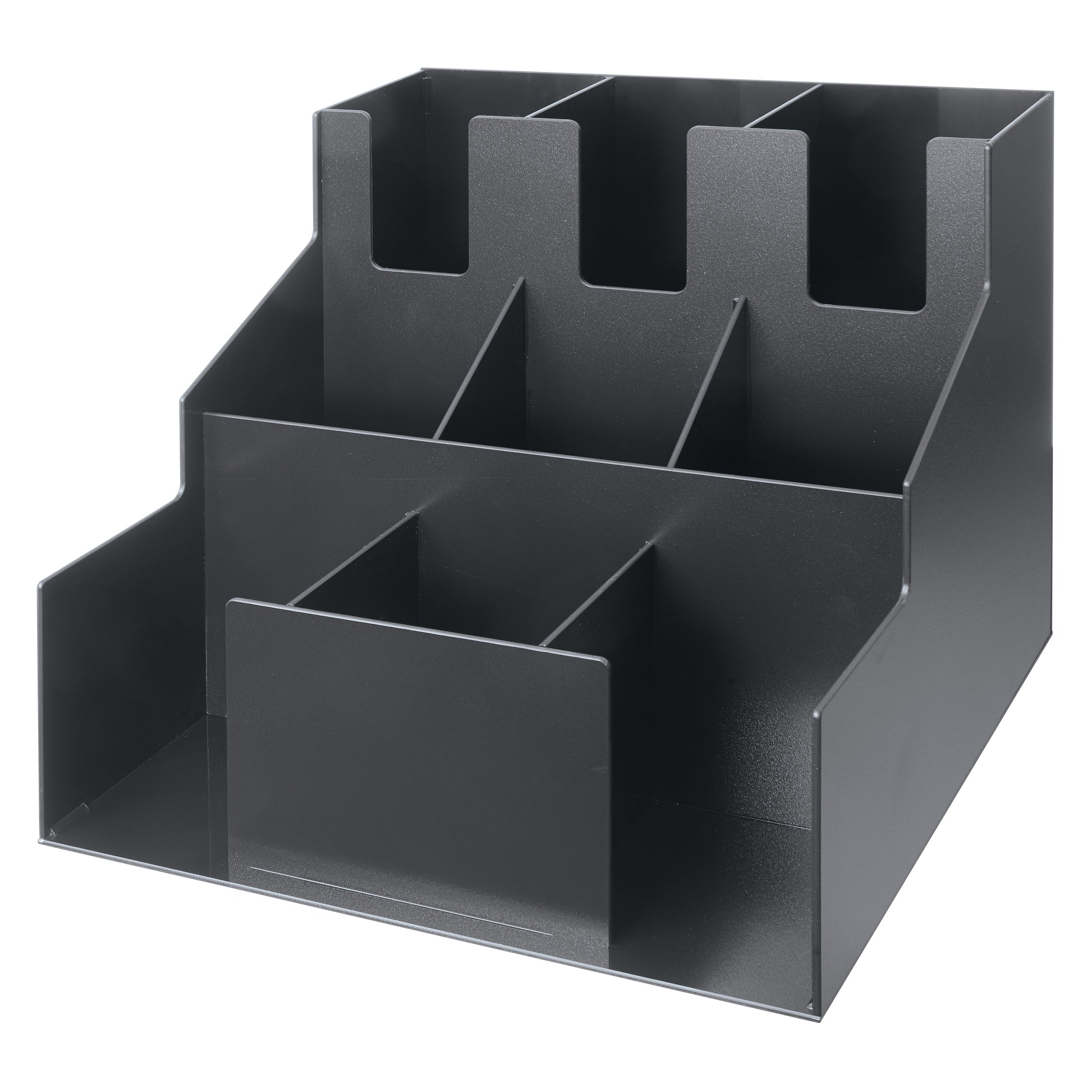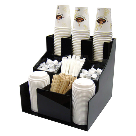The ideal solution for busy self-service stations with limited countertop space. Multifunctional compartments keep cups, lids, stirrers, and condiments organized and easily accessible. Made of durable, easy-clean ABS plastic.