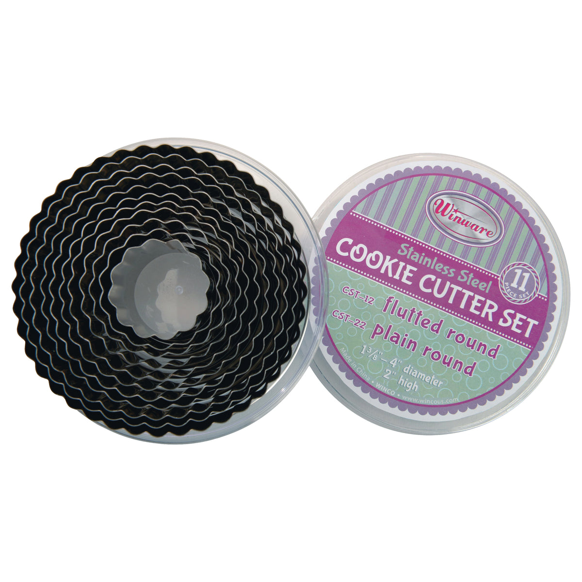 Winco CST-12 1-3/8 to 4 Inch Diameter Cookie Cutter Set Stainless Steel with Storage Container