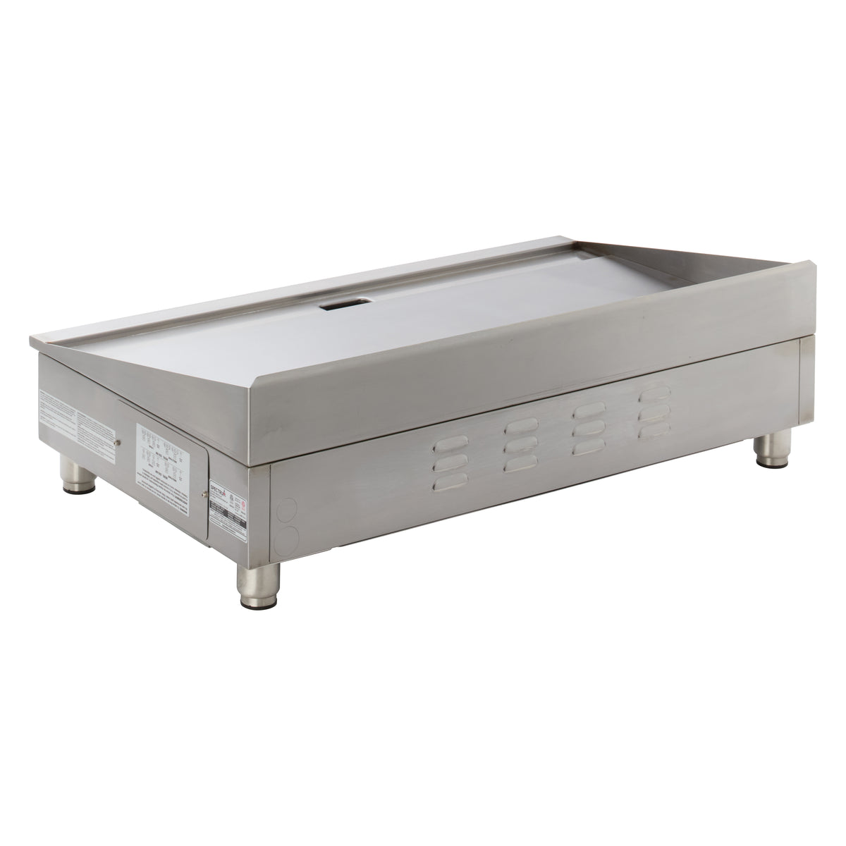 • 3 Heat Zones – (3) independently controlled heat zones allow for cooking a variety of foods at once ideal for restaurants, caterers and quick service • 1/2” Griddle Plate – Extra thick polished steel griddle plate ensures fast and even heating ideal for cooking eggs, burgers, pancakes and more • Backsplash – 3” high backsplash and enclosure prevents splattering keeping surroundings clean • Grease Drawer – High capacity removable grease drawer features a weep hole and baffle for easy cleaning • Commercial-Grade – Stainless steel body and heavy-duty heating elements designed to withstand daily use in commercial foodservice applications