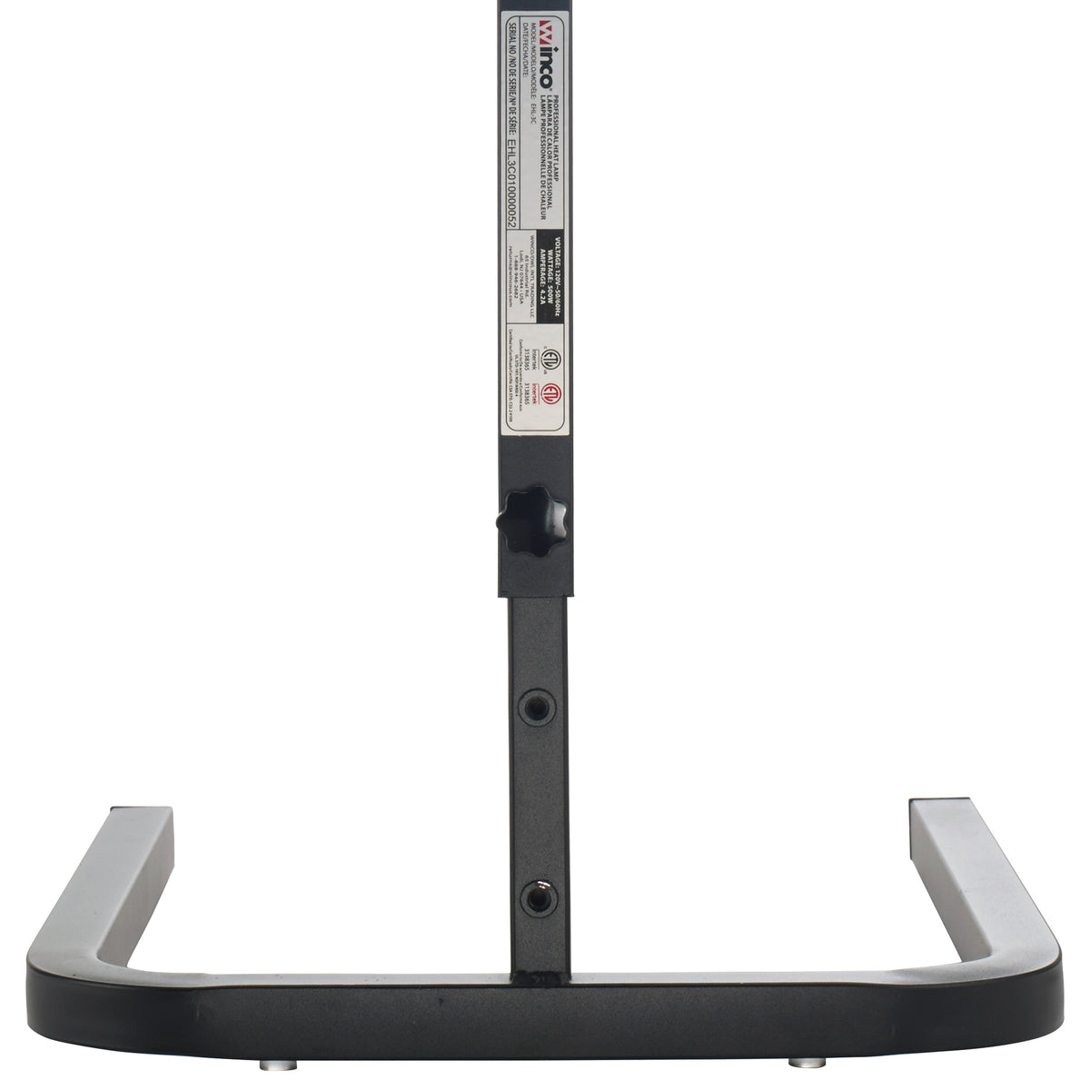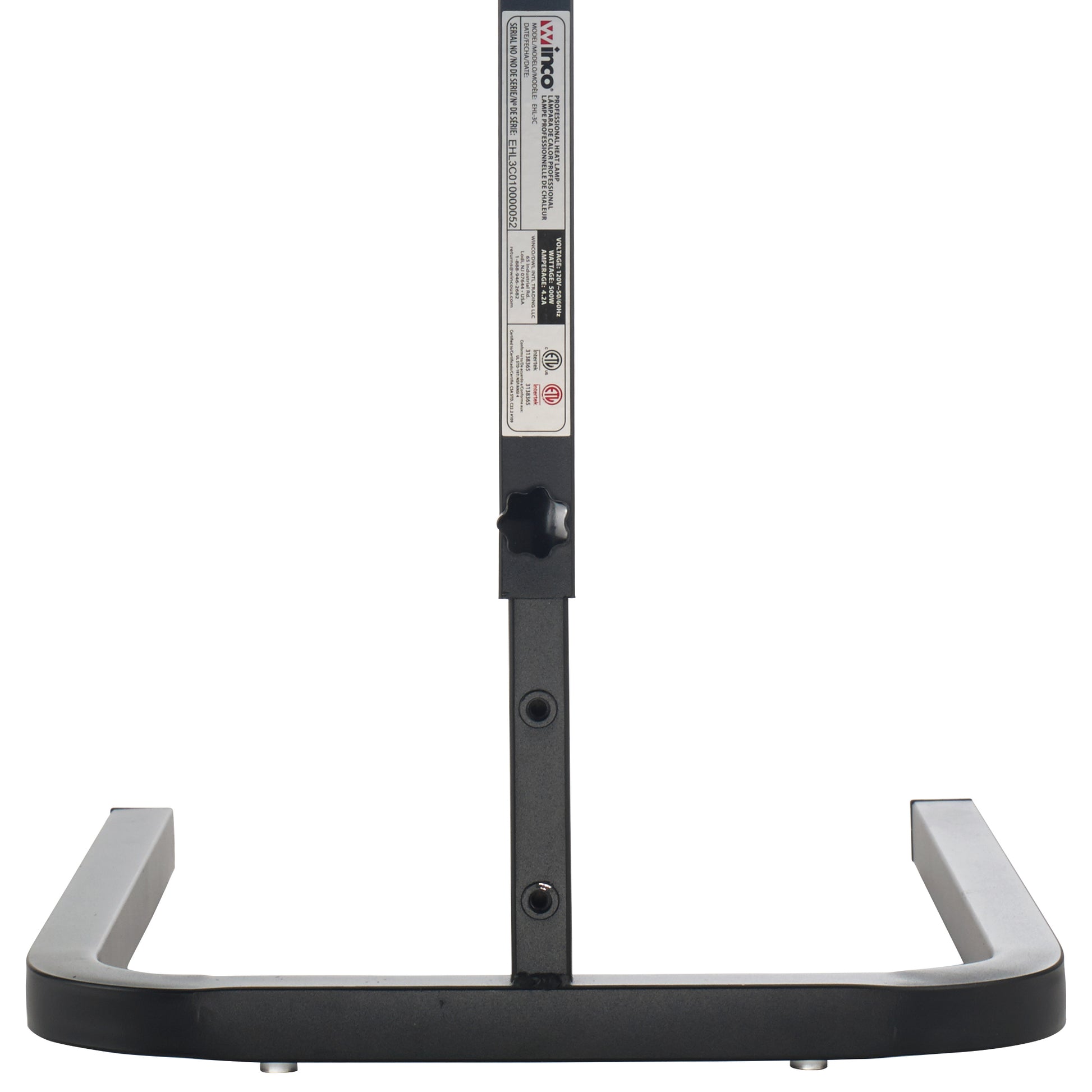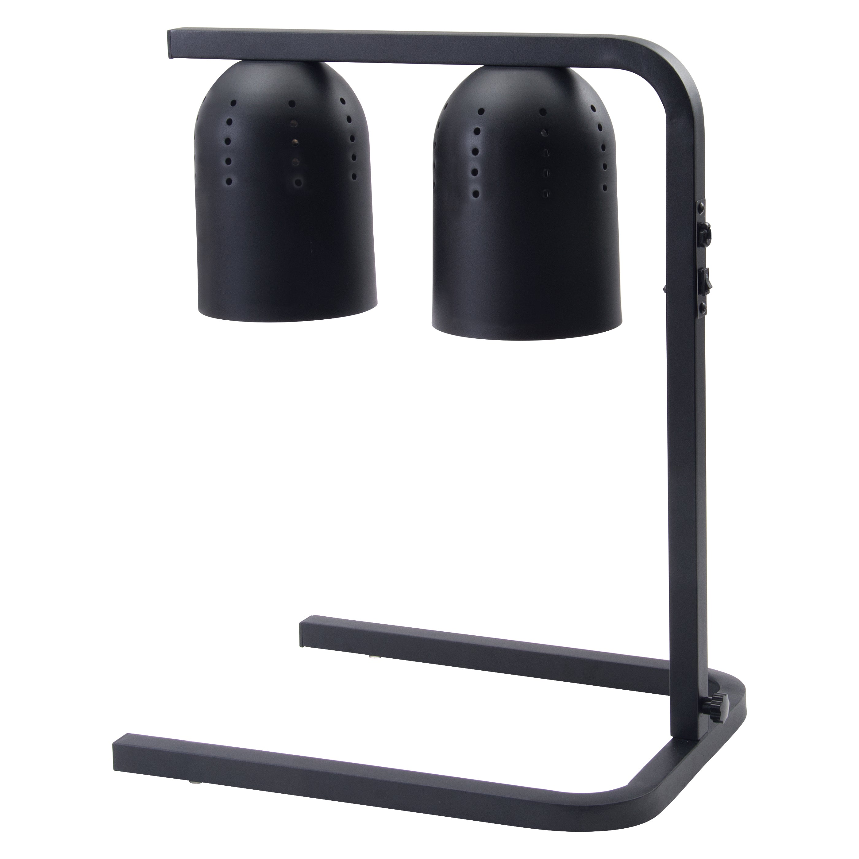 The Winco EHL-3C freestanding commercial food heat lamp keeps your food at ideal serving temperatures. The two shatter-resistant infrared 250W / 120V blubs provide even warming. The adjustable height stand can be set at 24”, 26.5” or 29” allowing for precise control of heat intensity. This heat lamp is commercial-grade made from heavy-duty powder coated steel tubing designed to withstand daily use in restaurants, cafes and quick service. The base fits most standard sized food trays for maximum combability.6 foot power cord; ETL listed for sanitation (NSF-4). 120V~60Hz, 250W (x2), 2.1A (x2). Base measures 18” L x 14” W.