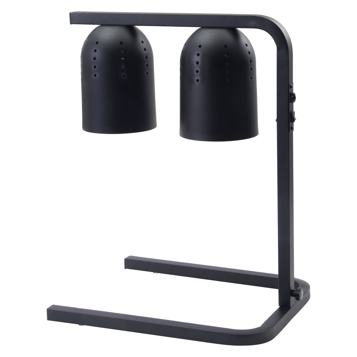 • Dual Bulb – Keep food at ideal serving temperatures with two shatter-resistant infrared 250W / 120V blubs • Adjustable Height – Three height settings (24” / 26.5” / 29”) allow for precise control of heat intensity • Commercial-Grade – Heavy-duty powder coated steel tubing frame is designed to withstand daily use in commercial foodservice environments ideal for restaurants, cafes and quick service • Universal Compatibility – Base fits most standard sized food trays • 6 foot power cord; ETL listed for sanitation (NSF-4). 120V~60Hz, 250W (x2), 2.1A (x2)
