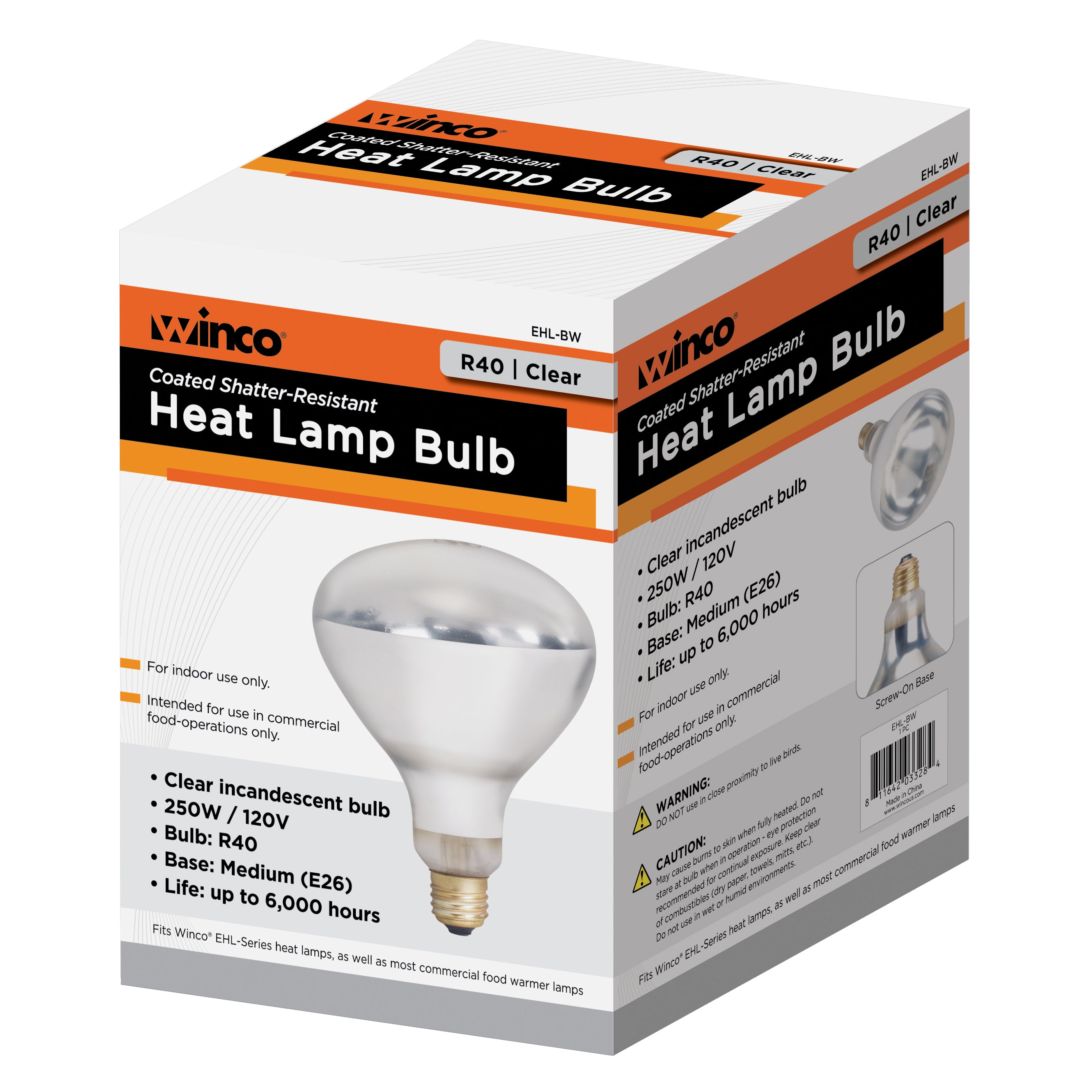 The Winco EHL-BW Shatter-Resistant Bulb, 250W, Clear is built for commercial foodservice professionals who demand durability, performance, and ease of use. Whether you're outfitting a restaurant, hotel kitchen, bakery, or catering setup, this product is a practical and reliable choice for daily operations.