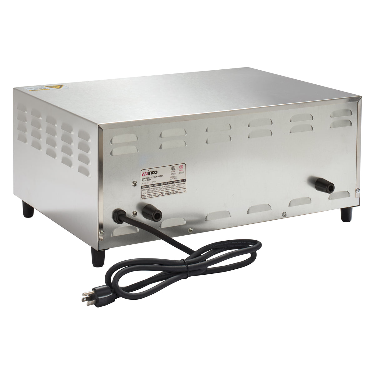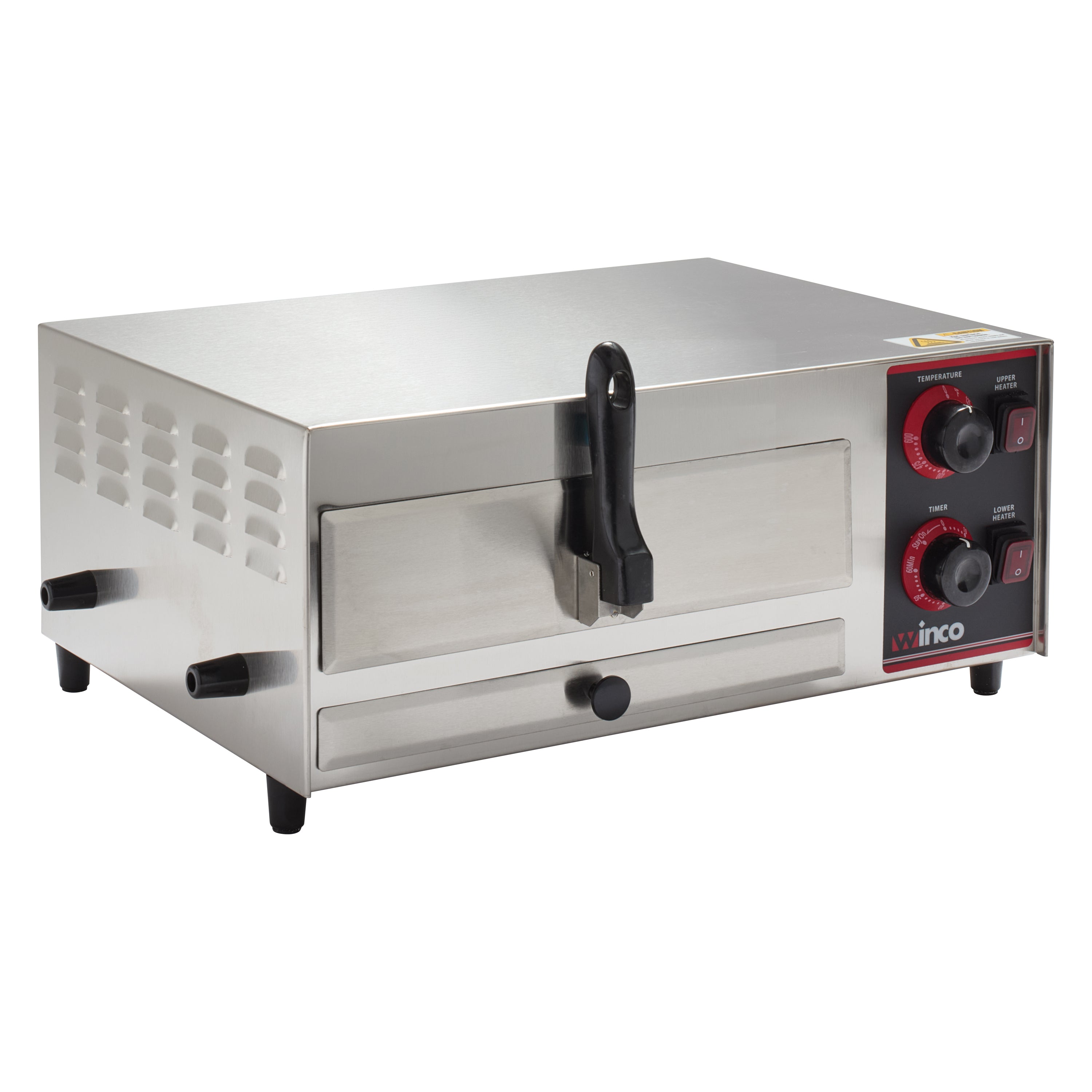 The Winco EPO-1 electric pizza oven is a commercial-grade countertop oven ideal for baking pizzas up to 12” in diameter. This versatile oven can also be used for breadsticks, desserts and more. Featuring two heating elements, this pizza oven heats up quickly and stays hot ensuring an even bake every time. A 60 minute timer with bell let’s you know when your food is done. The stay-on feature allows for continuous operation ideal for busy pizzerias, restaurants and concession stands. A removable crumb tray slides out for easy cleanup. 120V~60Hz, 1500W, 12.5A. Dimensions: 20-7/8″L x 14-3/4″W x 9-1/4″H.