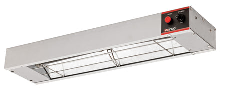 The Winco ESH-24 food lamp strip heater with adjustable stand keeps your food at ideal serving temperatures. The 24” tubular heating element provides 500w of constant even heating preventing hot spots. The commercial-grade extruded aluminum frame is designed to withstand daily use in commercial foodservice environments ideal for restaurants, cafes and quick service. The undermount design is Ideal for pass-through stations or under shelf installations with included mounting and hardware and hanging chains. Aluminum heat reflectors with focused heat patterns maximize holding times. This food strip heater features a toggle power switch with 180° full view indicator light and toggle switch for easy operation.