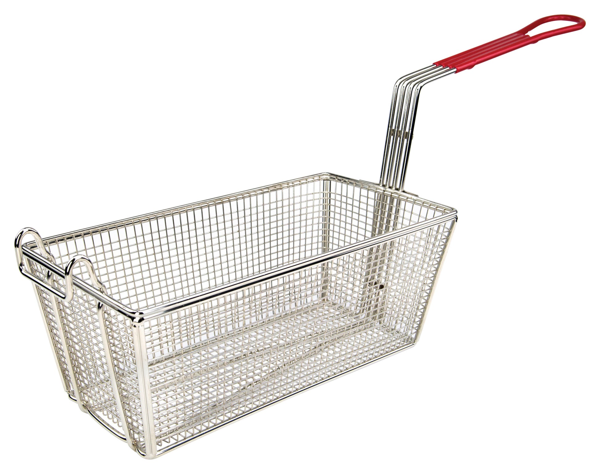 Winco FB-25 12-7/8 Inch Rectangular Fry Basket with Red Handle Nickel Plated