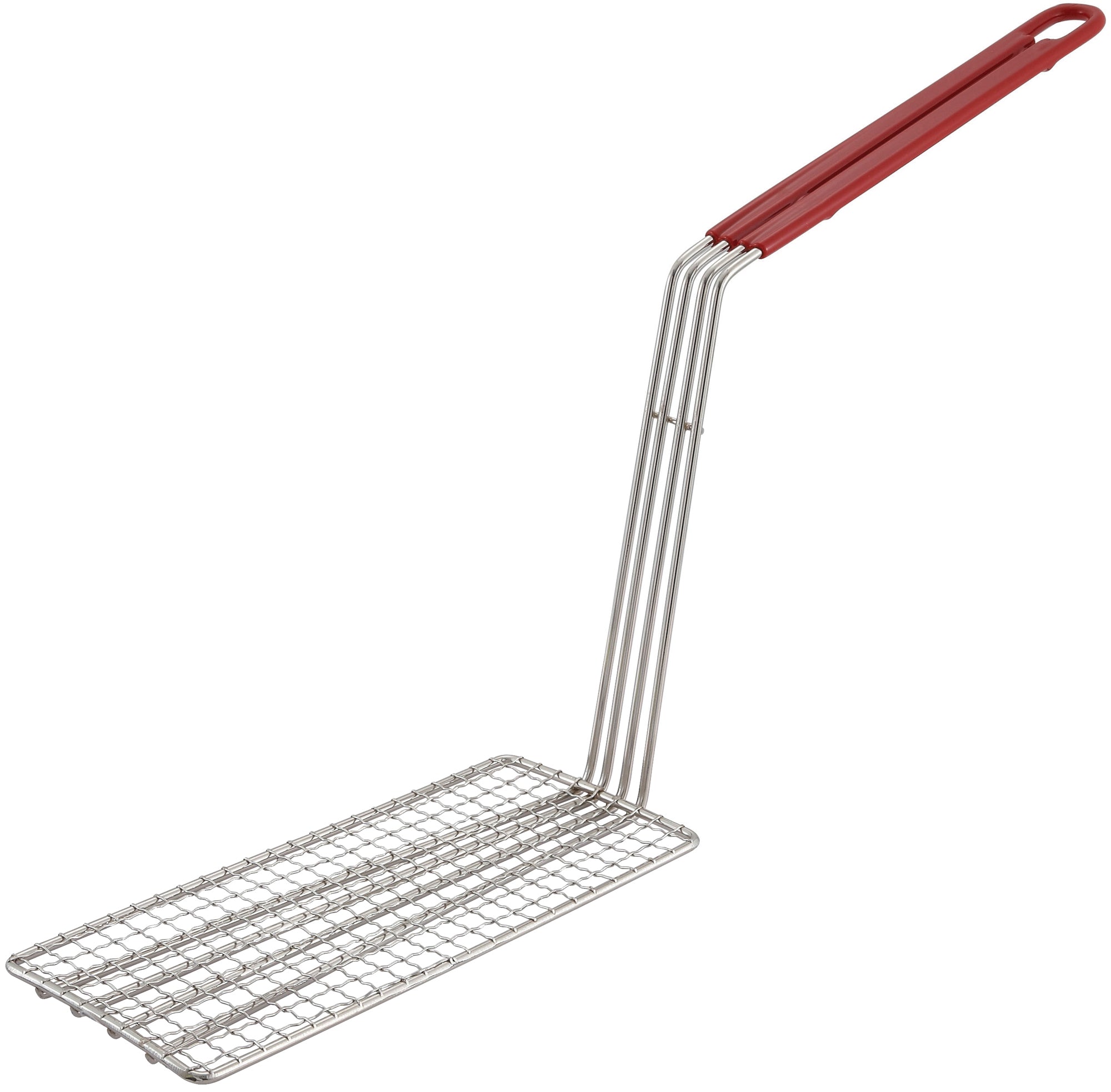 Winco FB-PB 11 Inch Fry Basket Press Rectangular Red Plastic Handle Nickel Plated