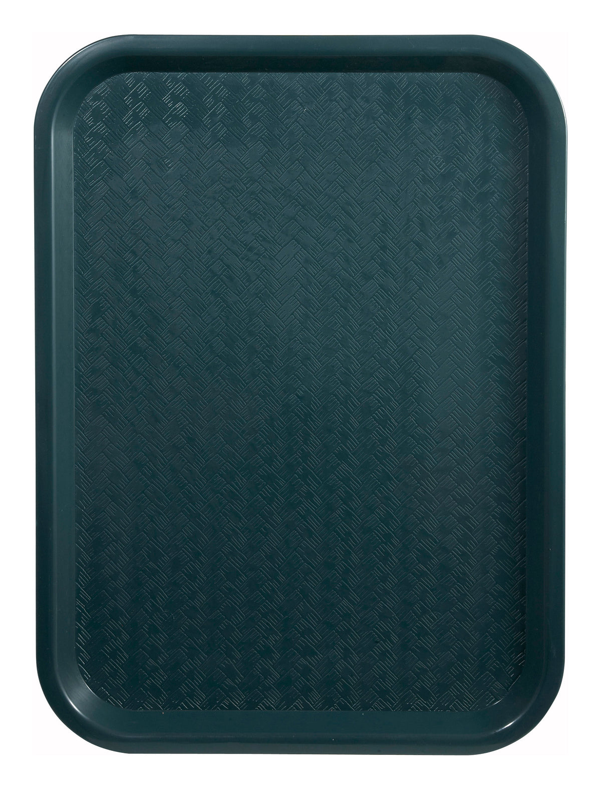 This 10" x 14" green fast food / cafeteria trays by Winco offers unmatched durability ideal for use in a variety of settings including quick service restaurants and snack bars. This plastic tray can also be used around the home for arts and crafts projects, plant saucers and more.The subtle basket weave texture provides extra surface grip so items stay in place when transported reducing spillage. These heavy-duty trays are reinforced preventing bending and warping. Each plastic tray is designed to nest together for space efficient storage. These serving trays are dishwasher safe for both residential and commercial dishwashers. 100% BPA free. NSF listed.