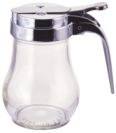 Winco G-115 6 Oz. Syrup Dispenser Thumb Operated with Chrome Plated Top Glass