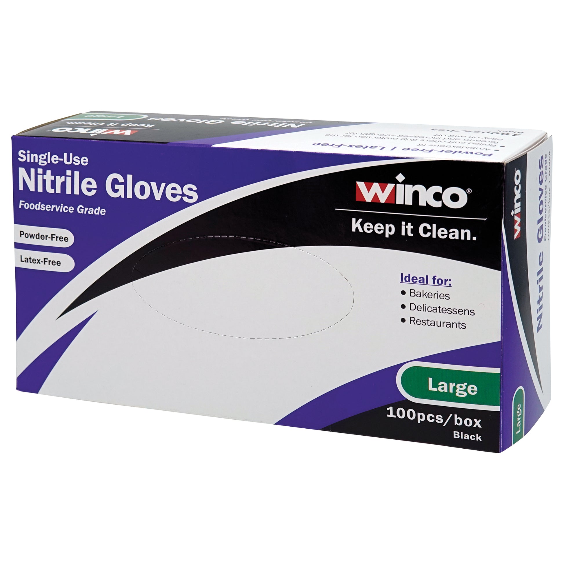 Winco GLN-LB Nitrile Disposable Gloves L Powder-Free Black 3Mil - 100 Count