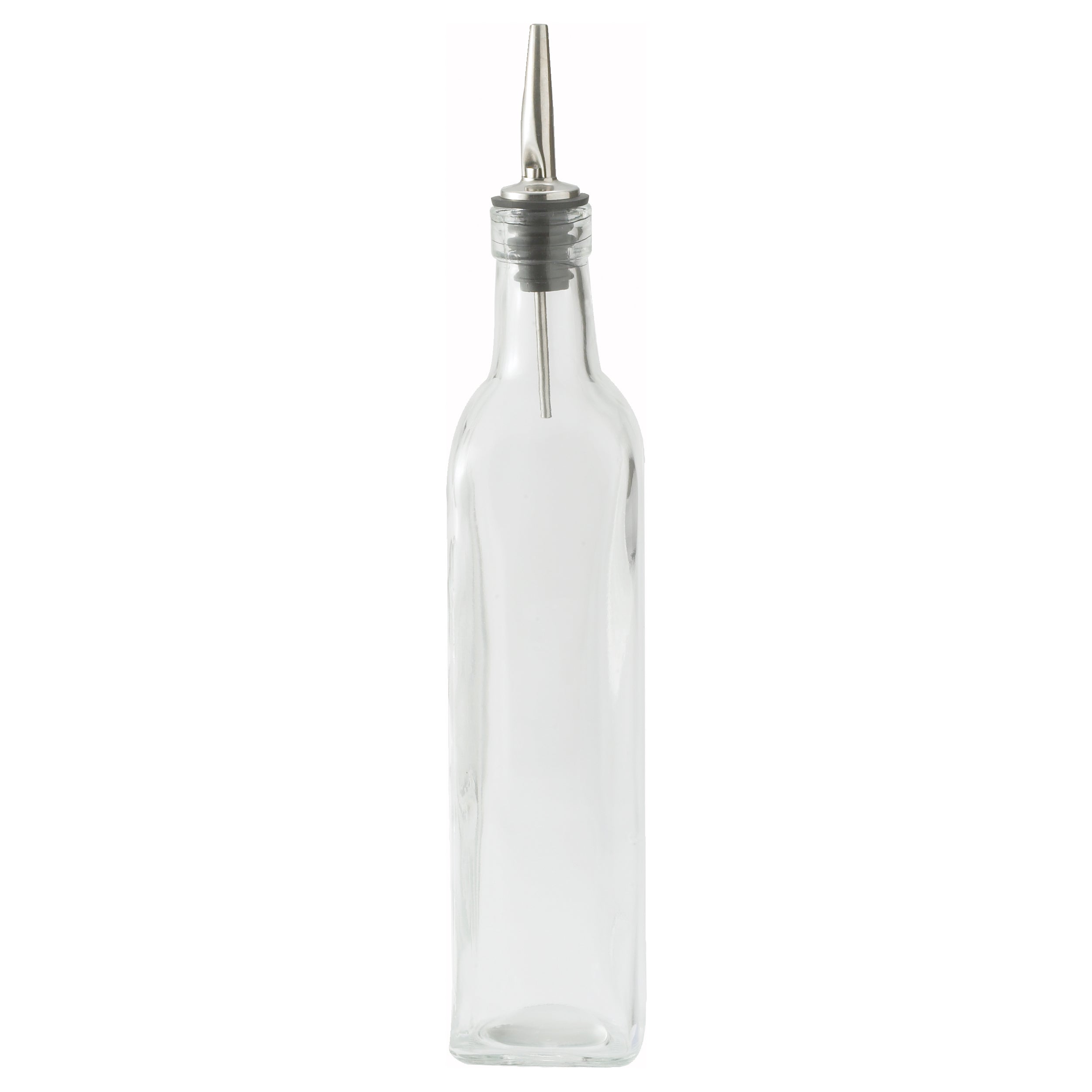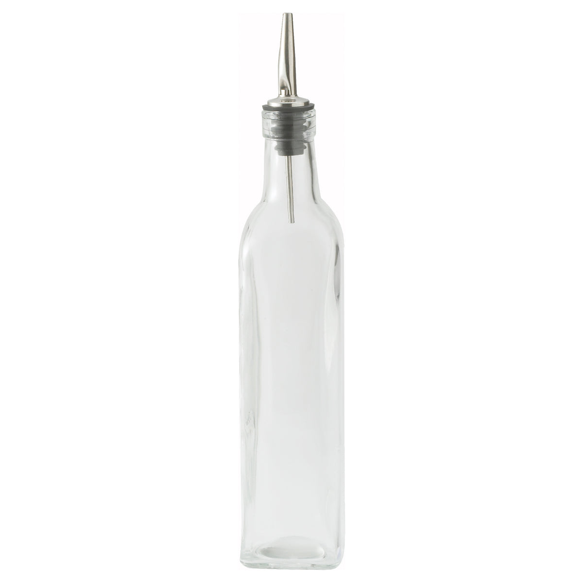 Winco GOB-16 16 Oz Glass Oil Bottle Square with Lid Clear