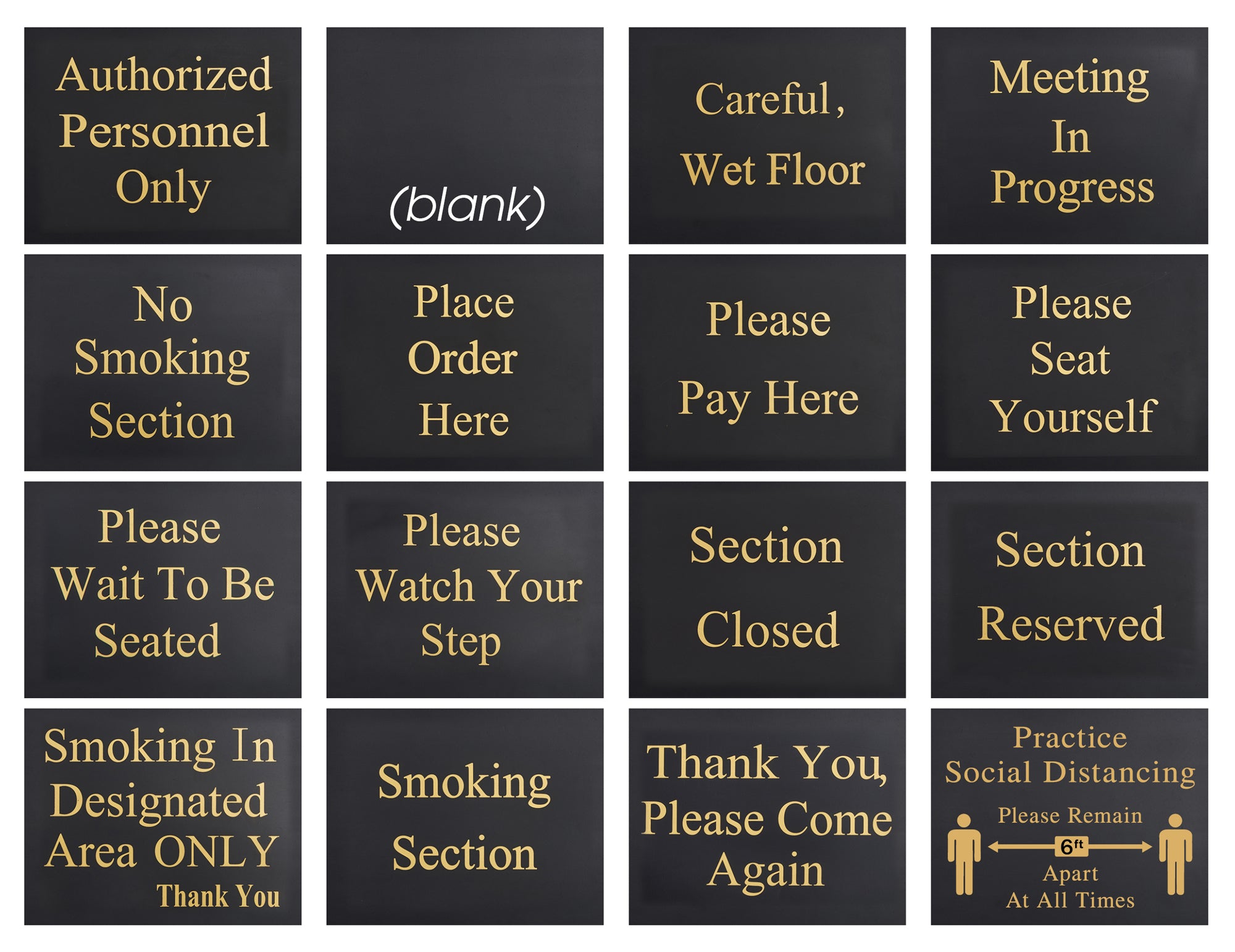 • Pre-printed signs with attractive gold lettering provide optimum visibility
