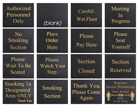 Winco HTS-60K 13-1/2 Inch x 10 Inch Sign Set with 15 Messages and Base