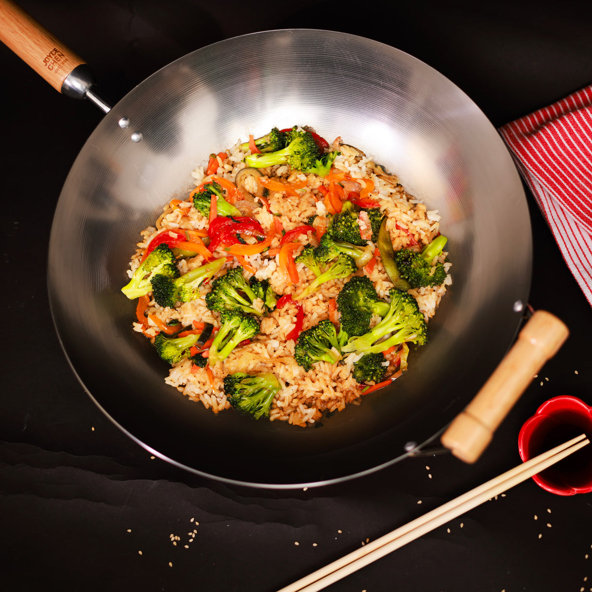 • The uncoated wok surface adds savory umami flavors to cooked foods as it is seasoned over time