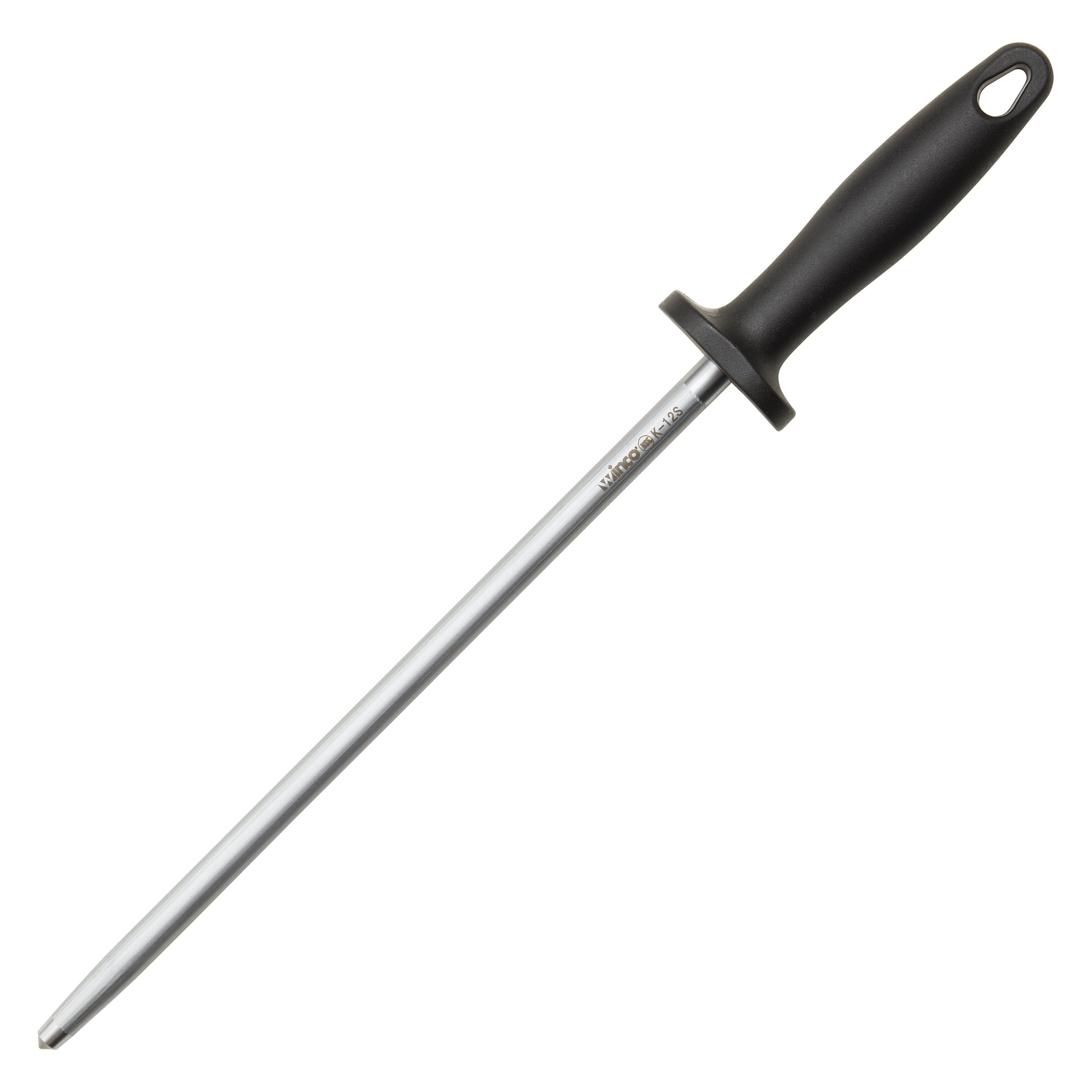 Winco K-12S 12 Inch Round Stainless Steel Sharpening Steel with Plastic Handle