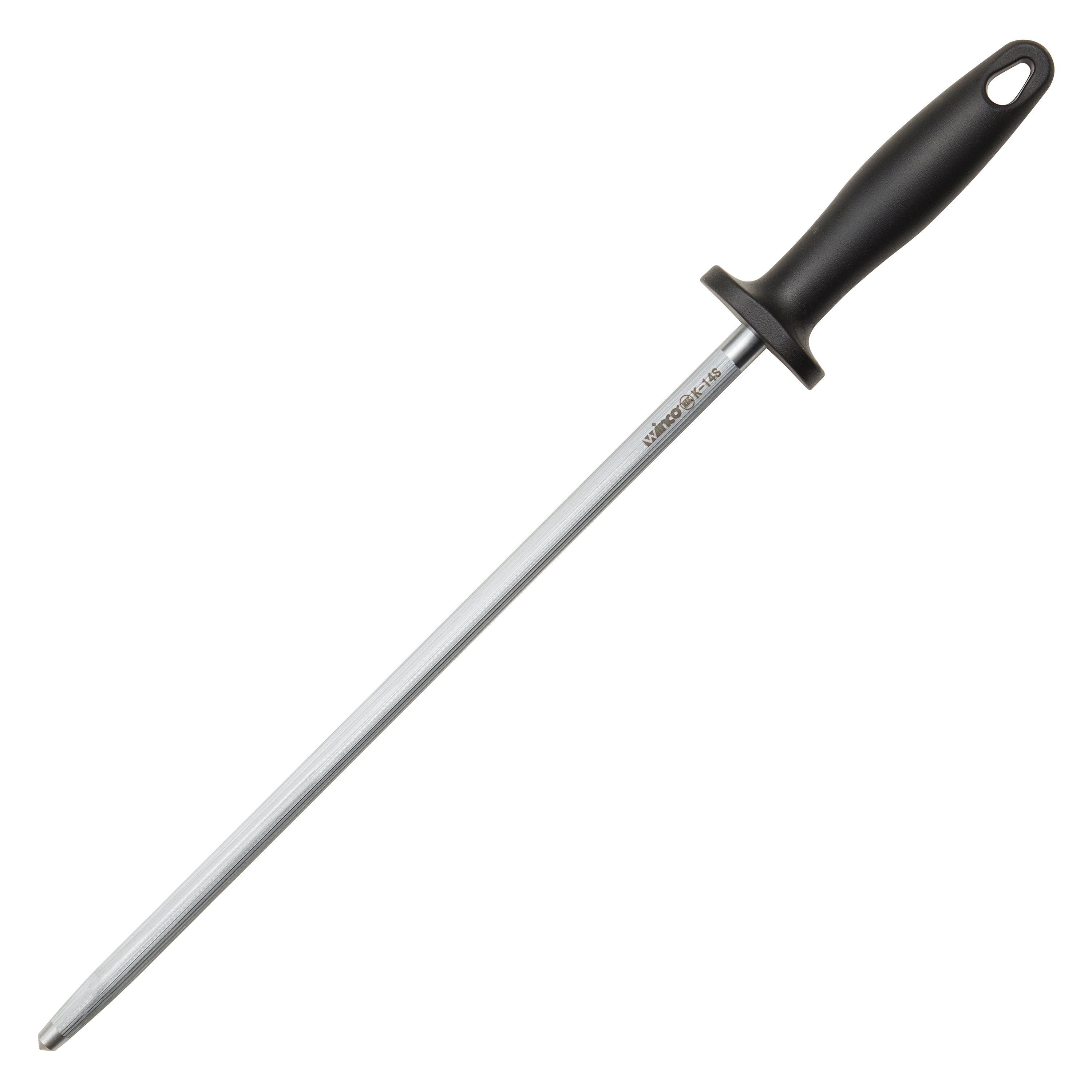 • 14” long round stainless steel rod maintains a sharp knife blade