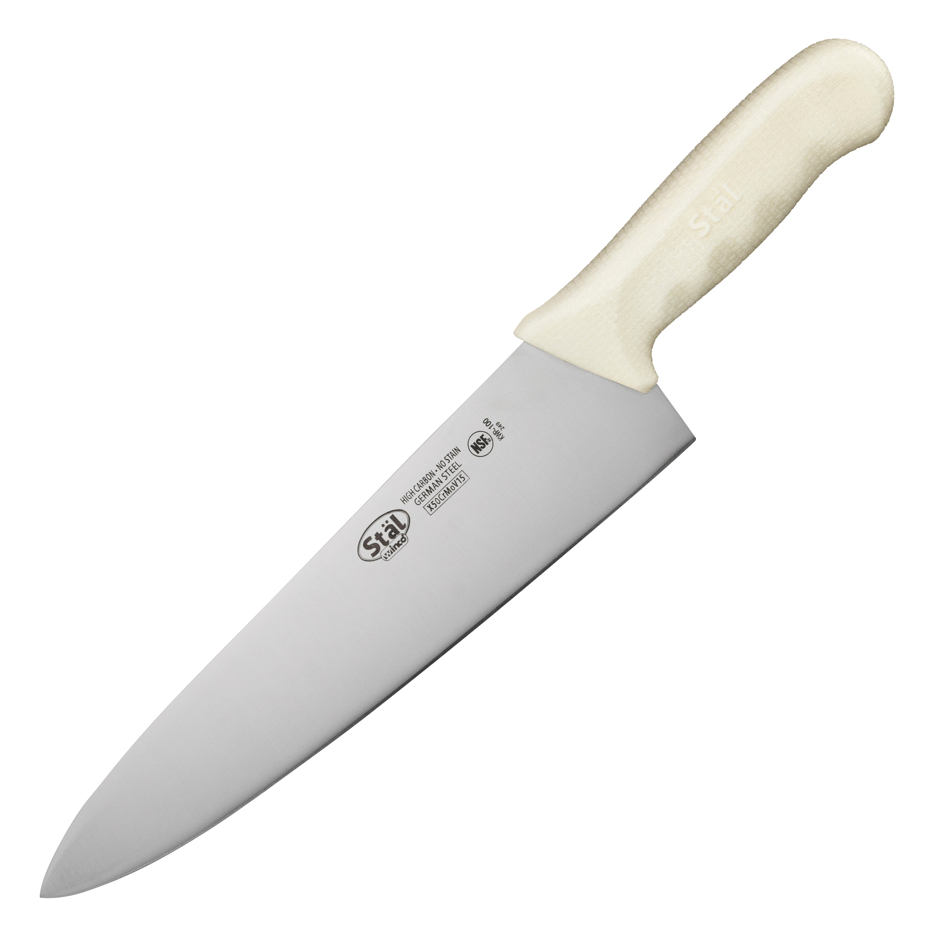 Winco KWP-100 10 Inch Blade High Carbon Chef Knife with White Polypropylene Handle