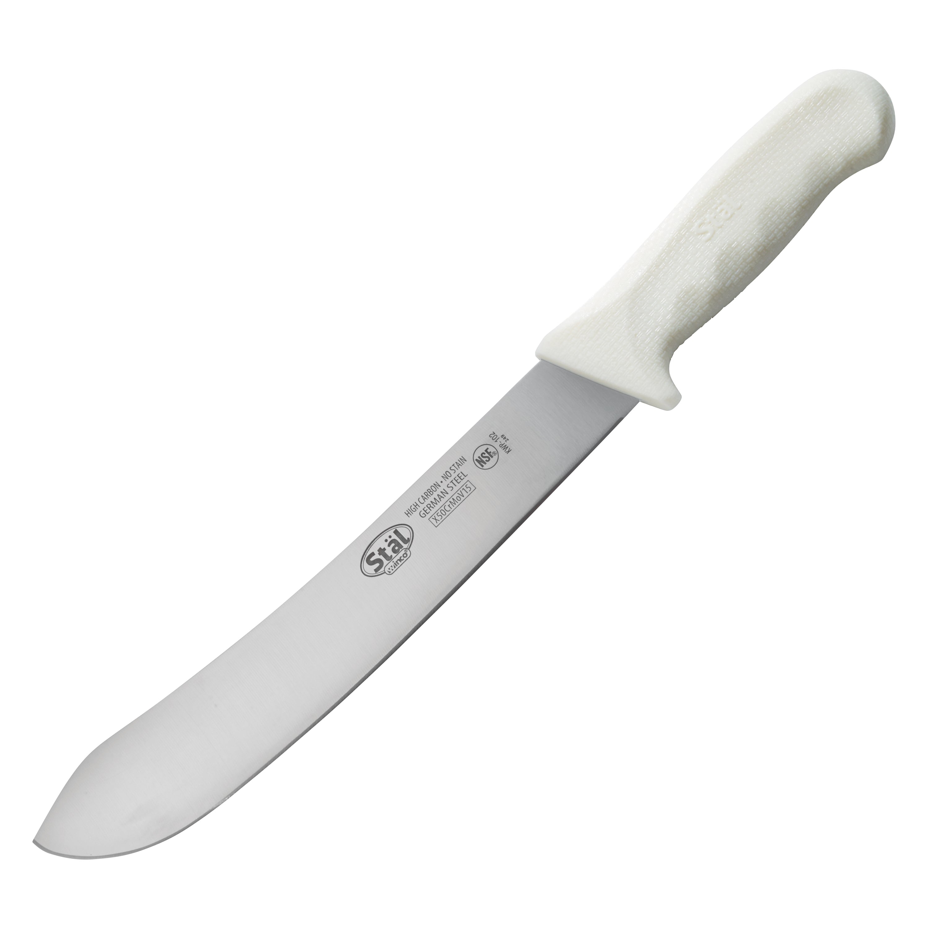 Winco KWP-102 10 Inch Blade Butcher Knife High Carbon Steel White Handle