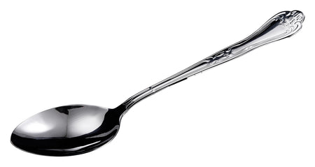 • Versatile –This serving spoon is ideal for sides, sauces, and more • Elegance Pattern – Embossed floral embellishments with a single motif at the handle tip adding a stylish touch to traditional flatware patterns • Commercial-Grade – Made from heavy-duty commercial grade stainless steel designed to withstand daily use in a commercial environment ideal for hotels, restaurants and cafes • Heavyweight – Forged from 18/0 stainless steel, highly resistant to bending and corrosion for maximum durability • Dishwasher Safe