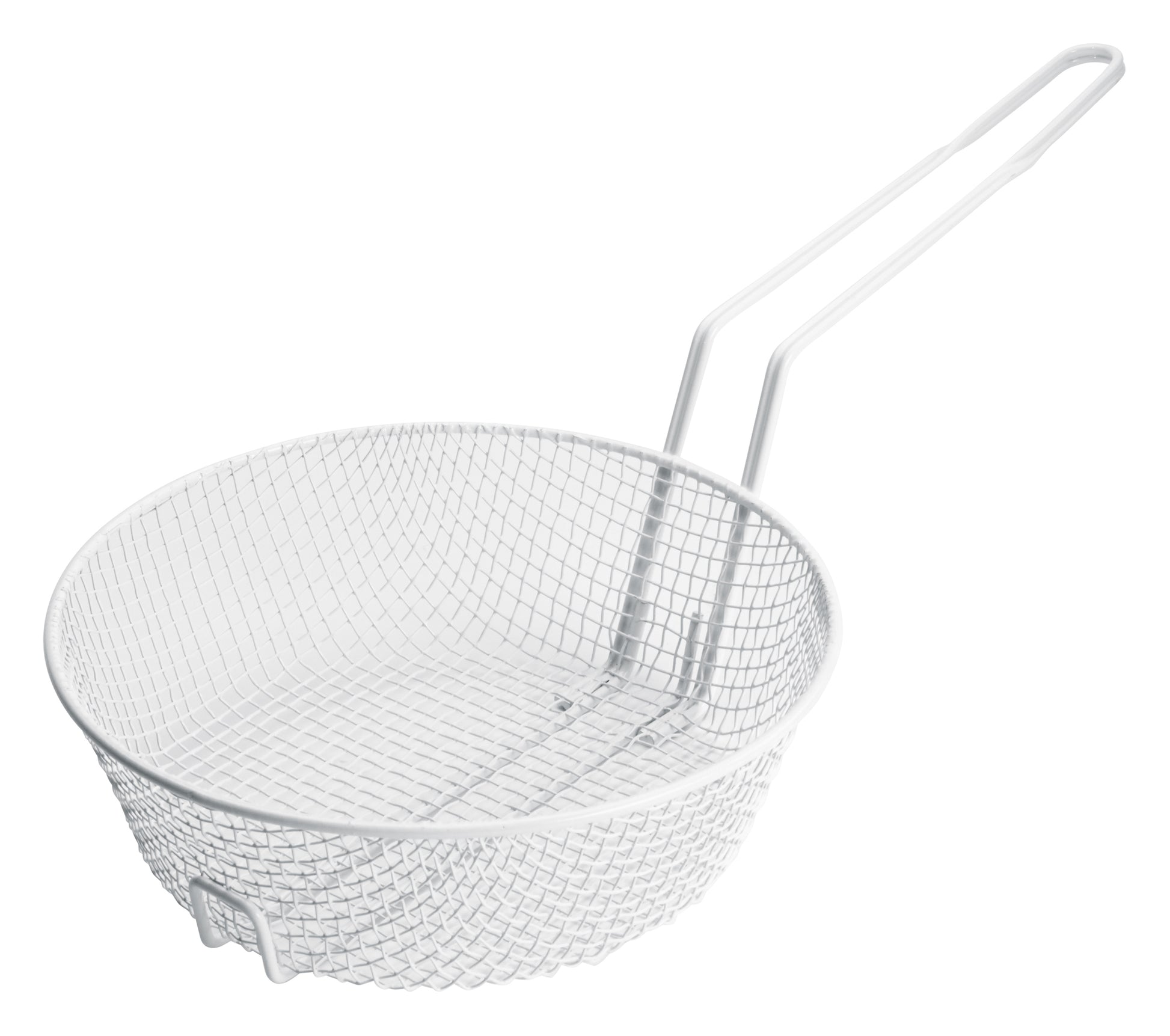 The plastic non-stick coating on these steel wired breading baskets ensures that batter/breading sticks to chicken, shrimp or onion rings and not to the basket.