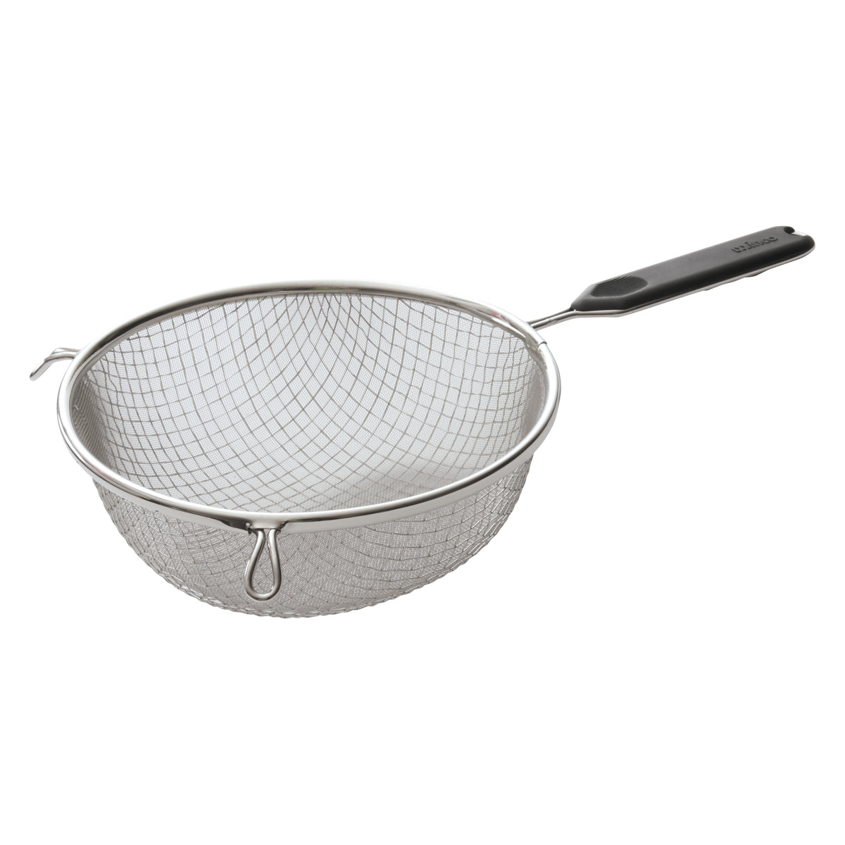 Winco MSTP-8DF 14 Inch Mesh Strainer Double Fine Mesh Plastic Handle Stainless Steel