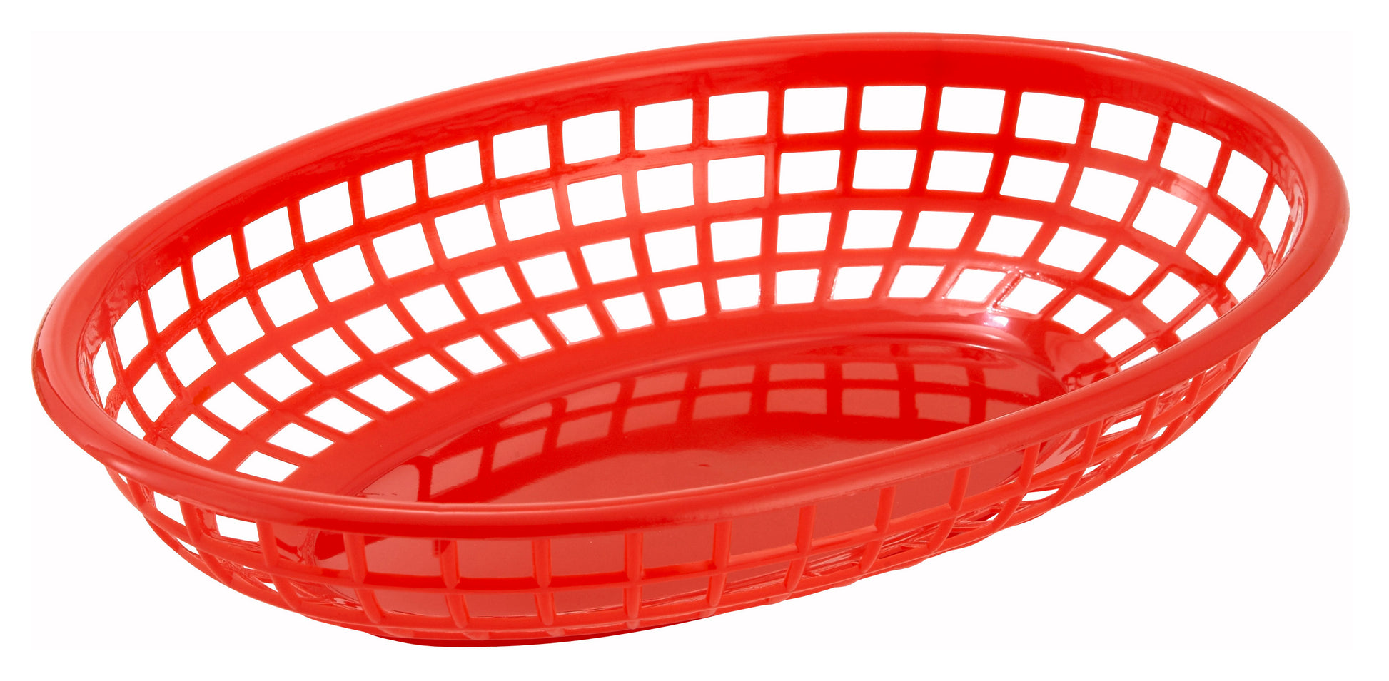 Winco PFB-10R 9-1/2 Inch Red Oval Fast Food Basket BPA Free Plastic
